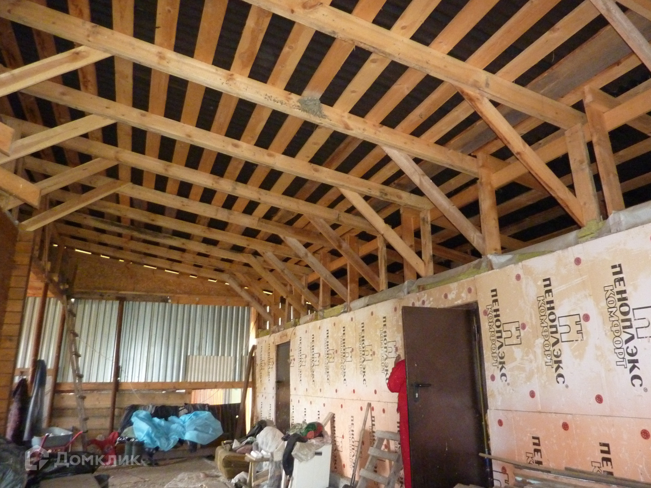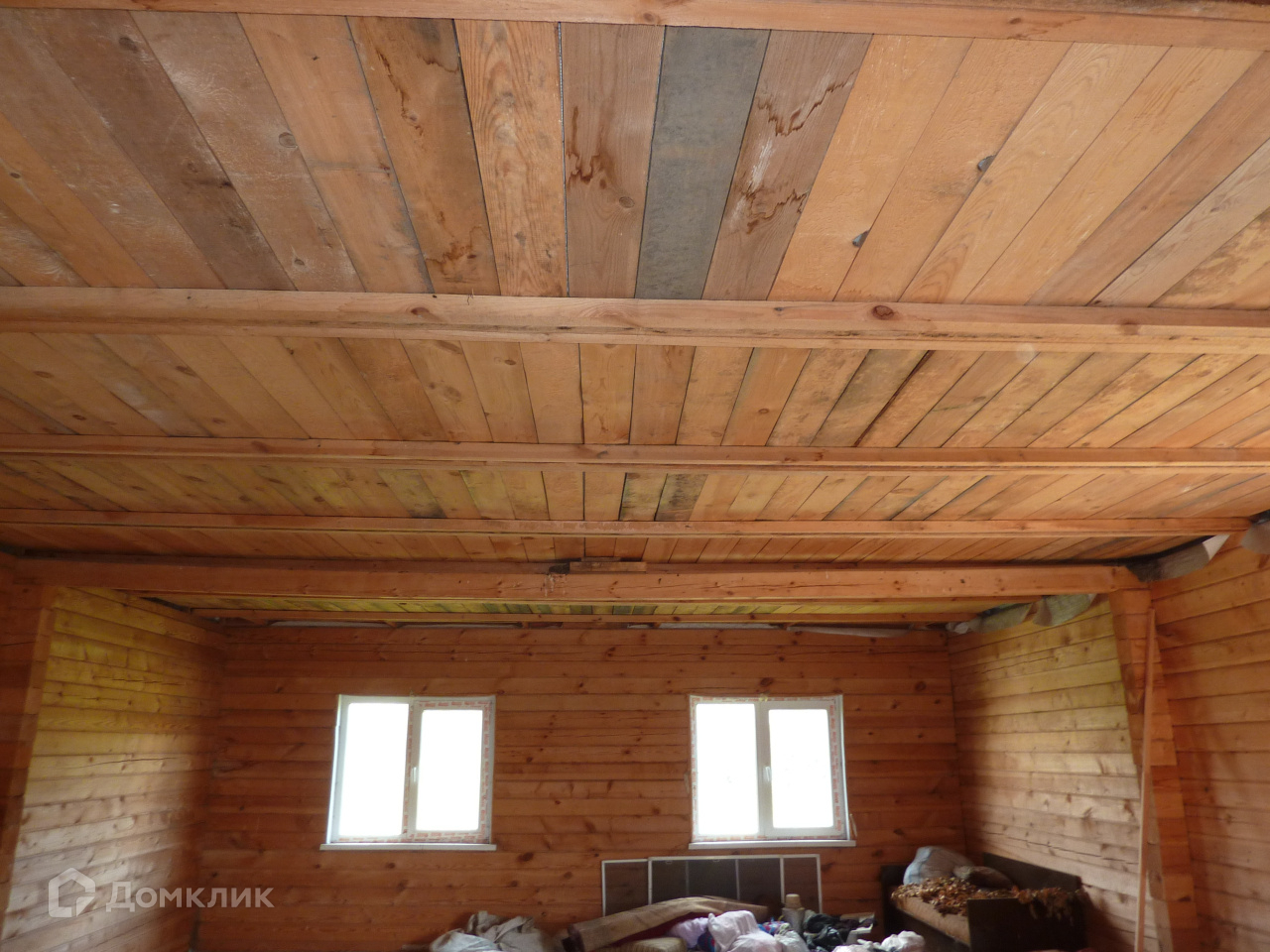 ☑️ Дом внутри представляет собой единое помещение, потолок готов (утеплён), пол застелен не полностью утеплён.