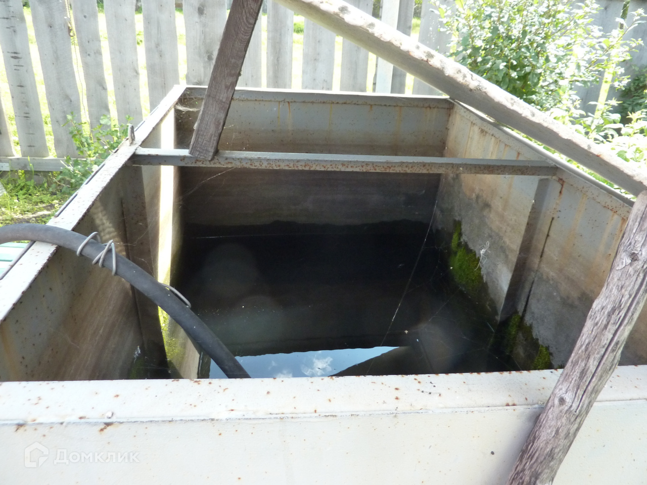 ☑️ На участке глубокий колодец, вода качается насосом и наполняется в металлическую ёмкость для полива.