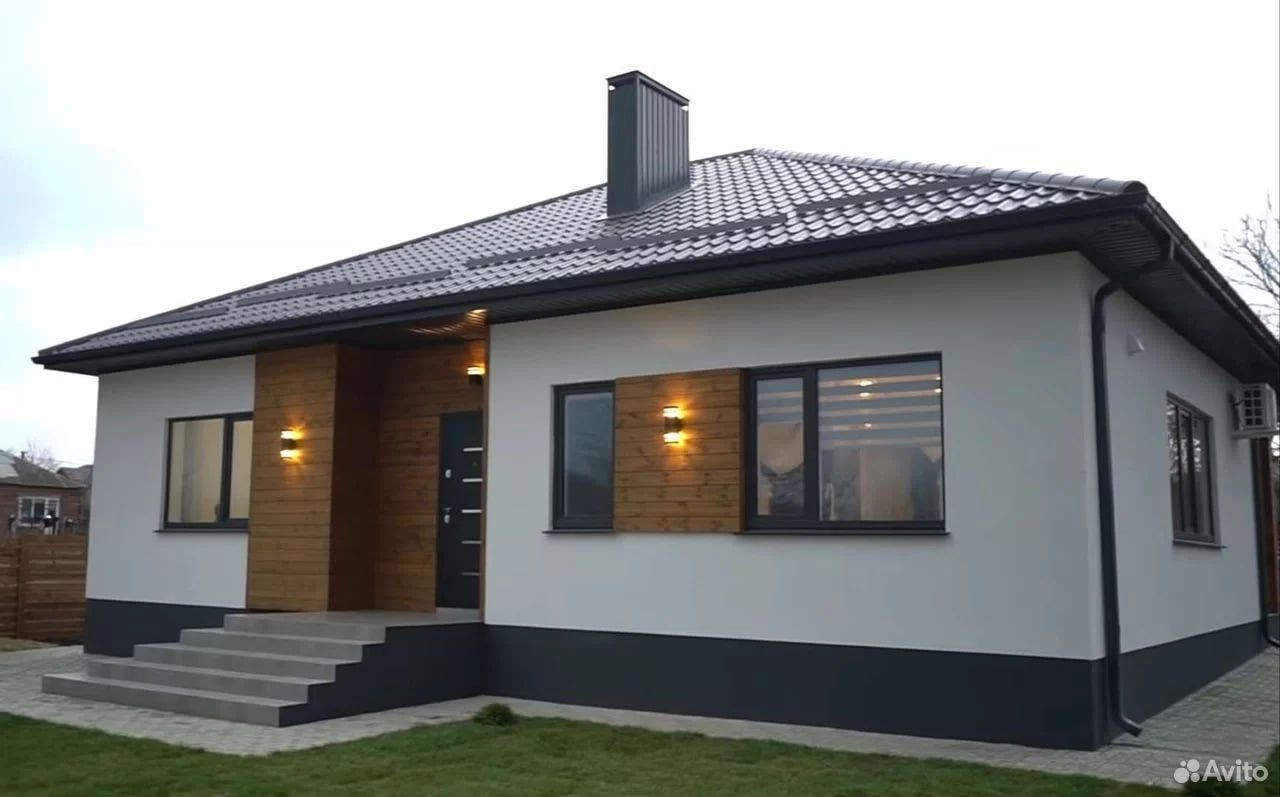 Индивидуальный жилой дом:  Площадь - 105,6 кв. м.  Этажность - 1 этаж .  Фундамент - свайно-ростверковый.