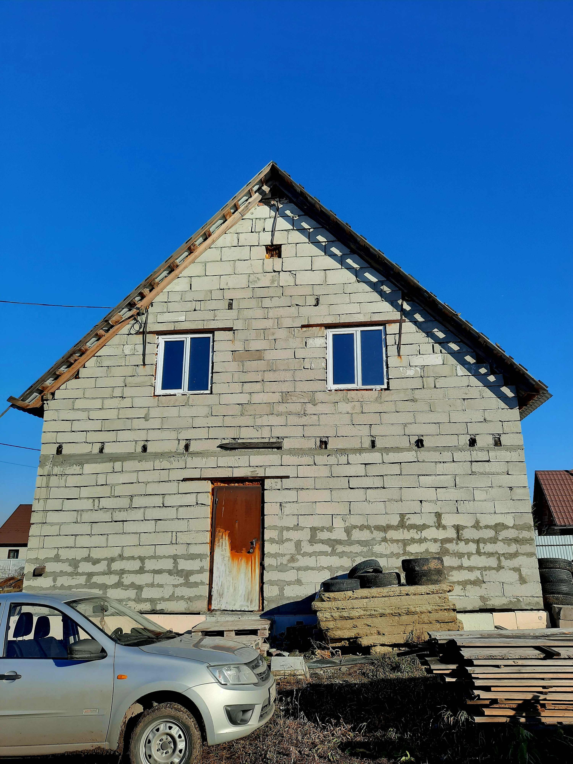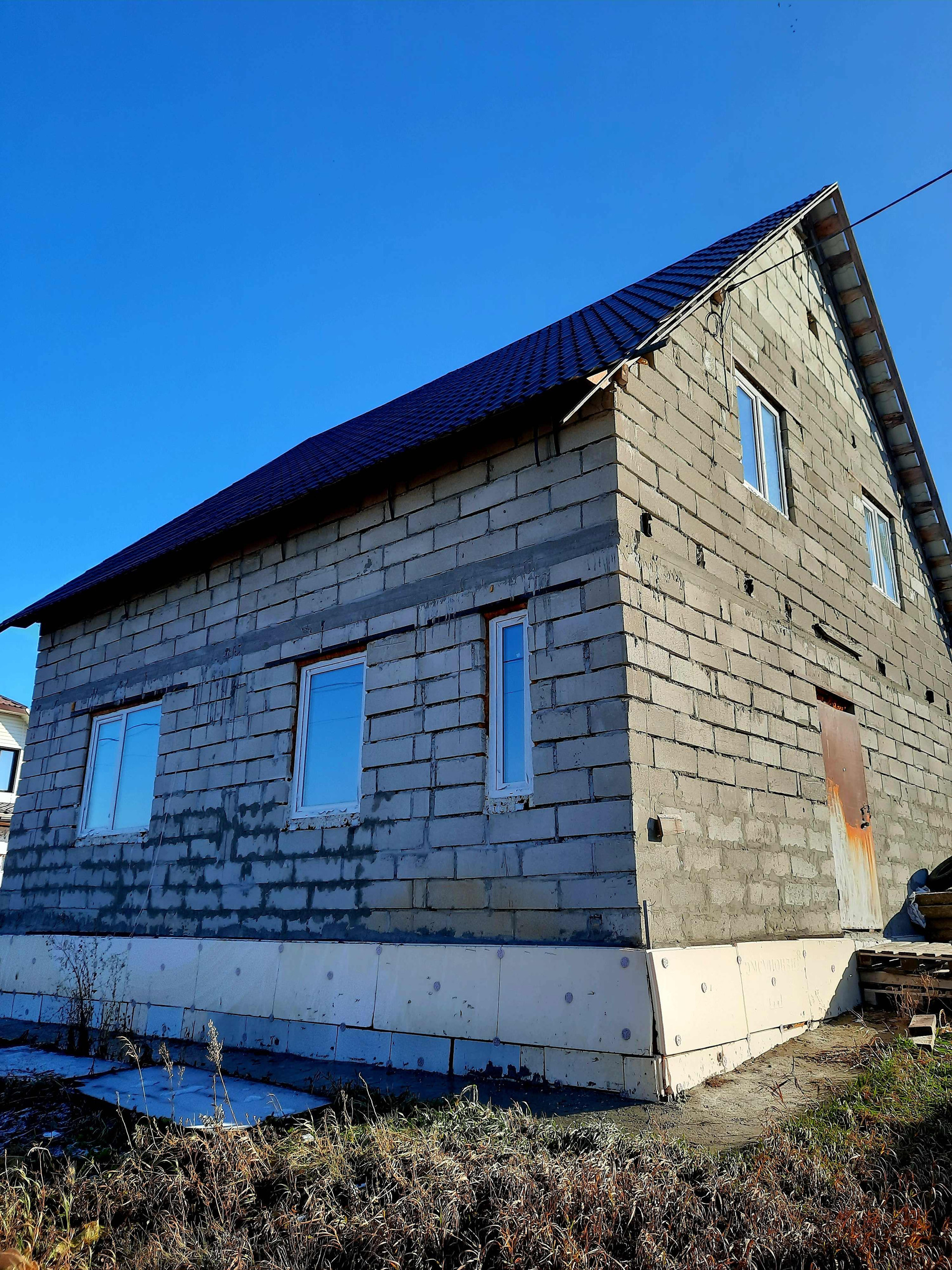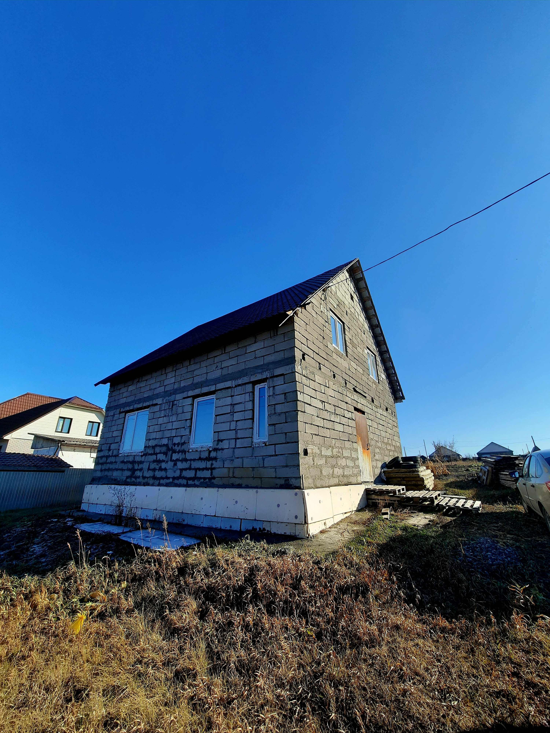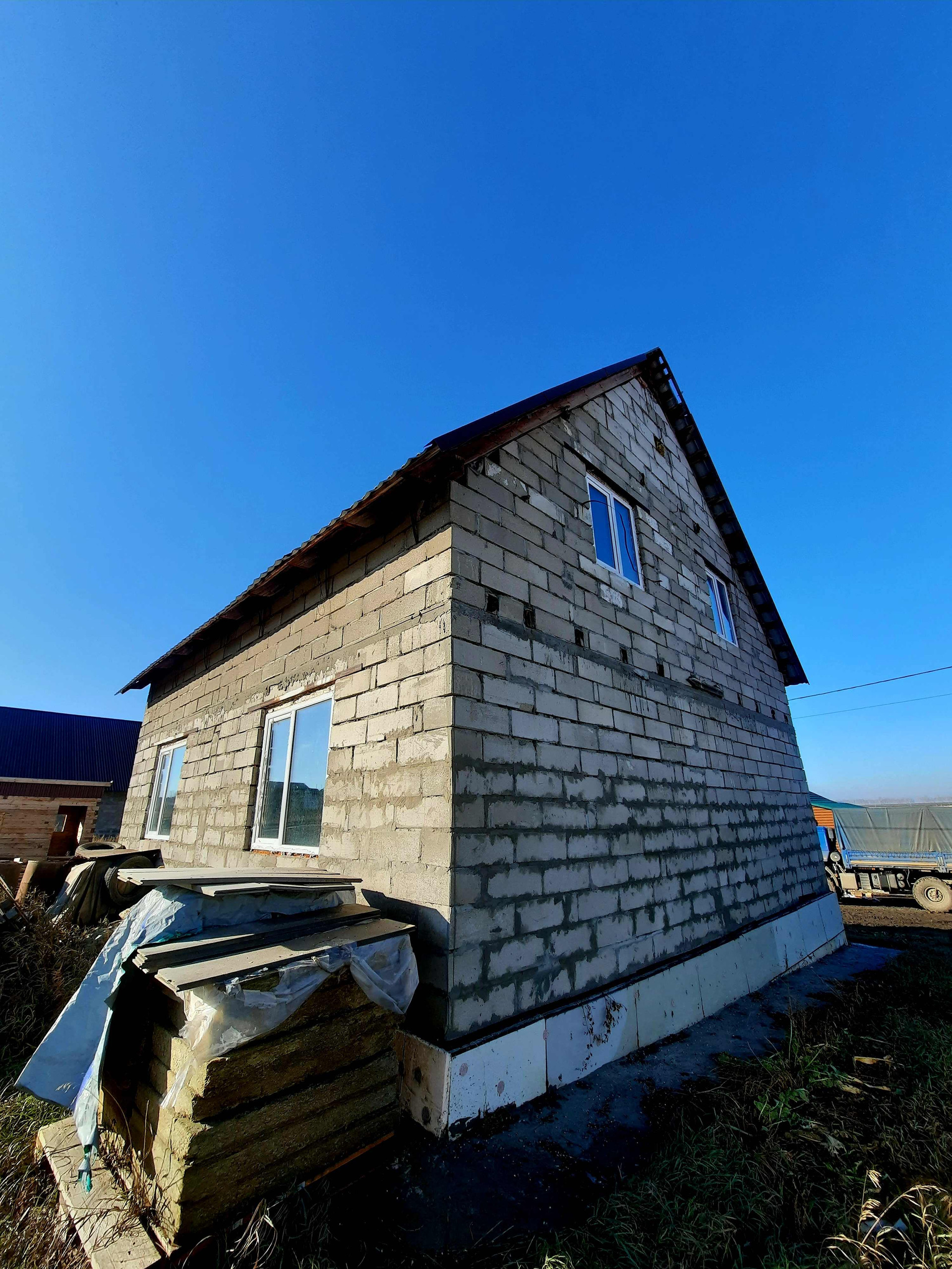 МАТЕРИАЛ стен- газоблок, крыша- металлочерепица. Пластиковые окна, пол бетонный. Под отделку.