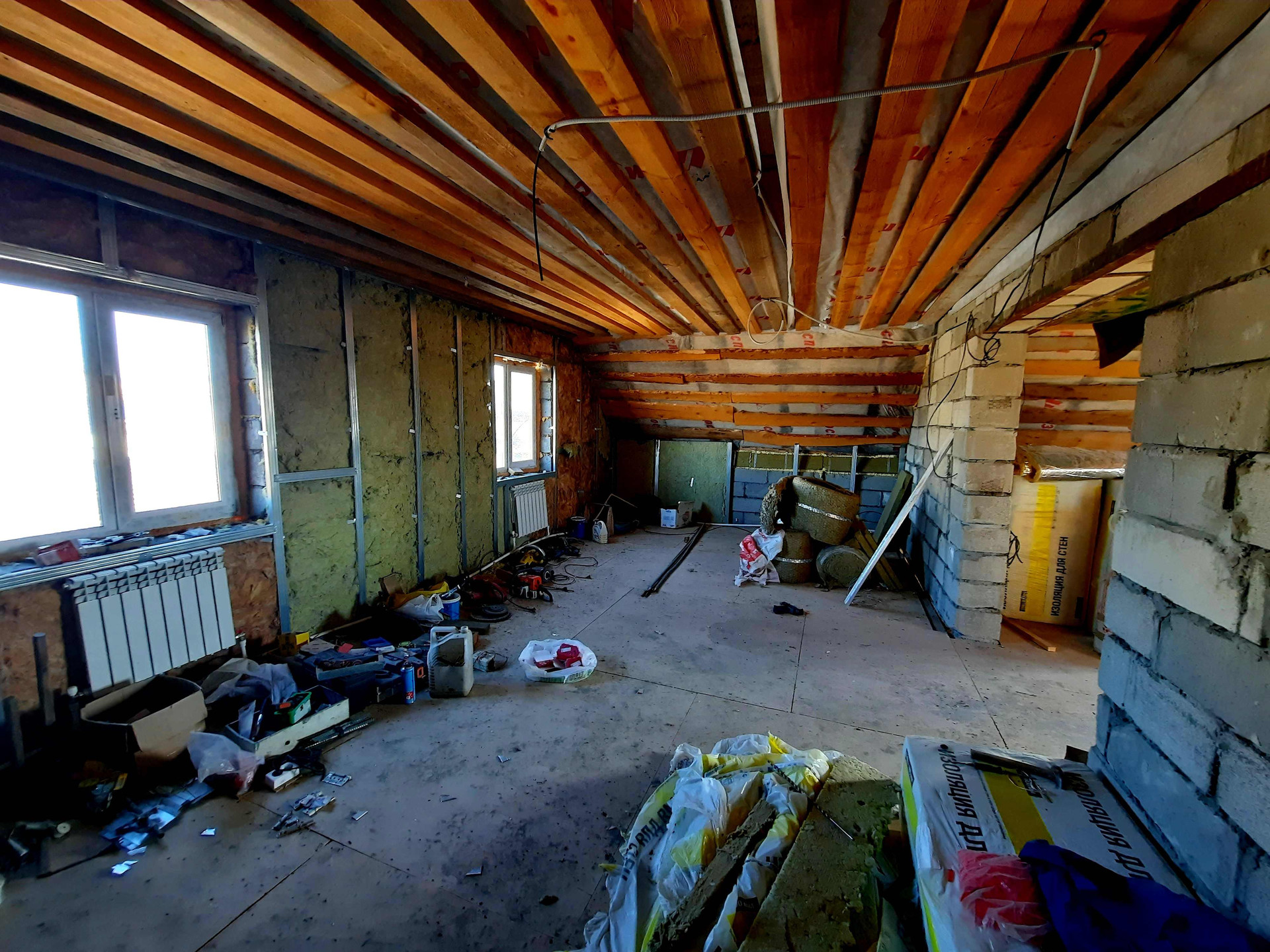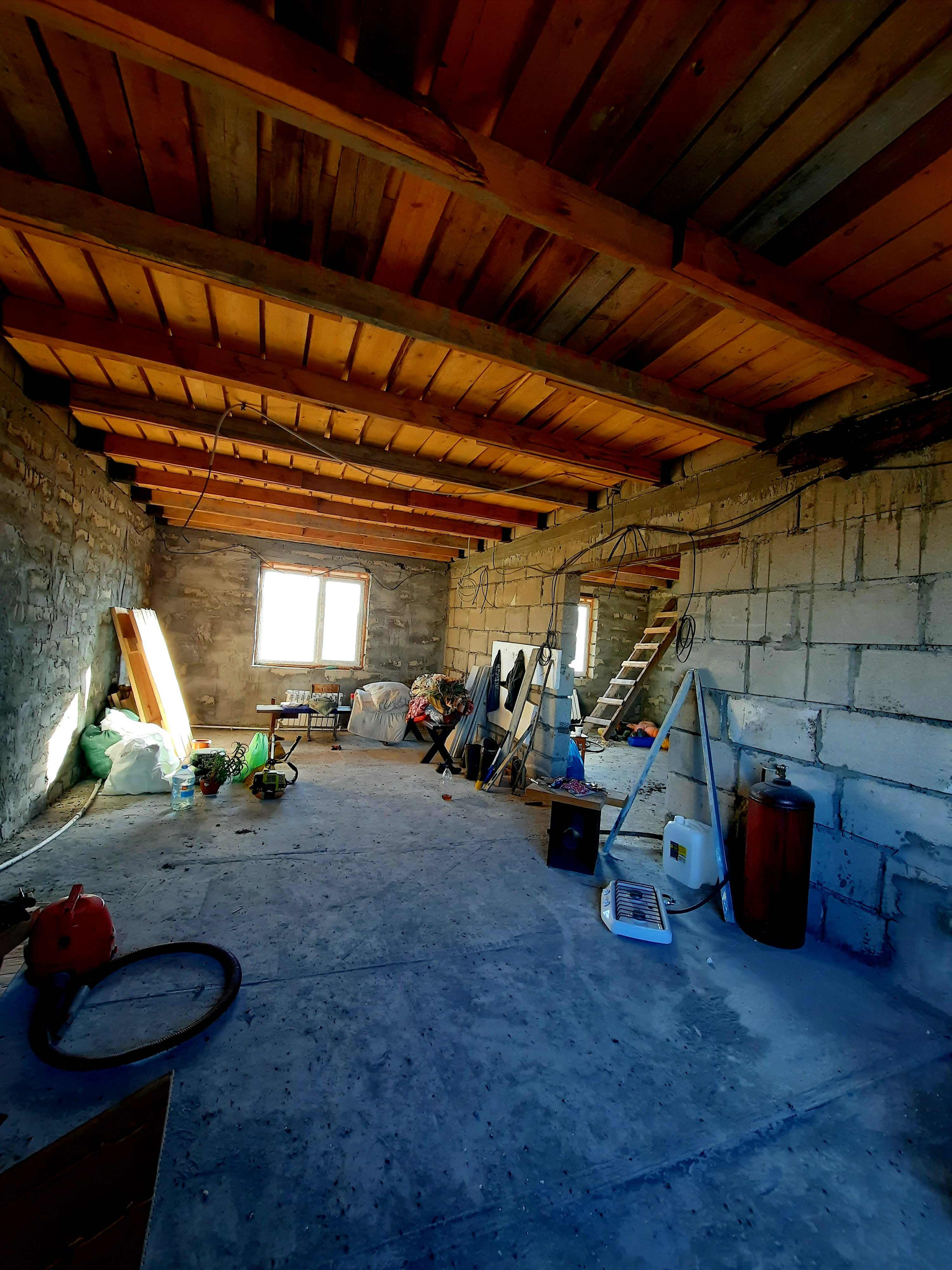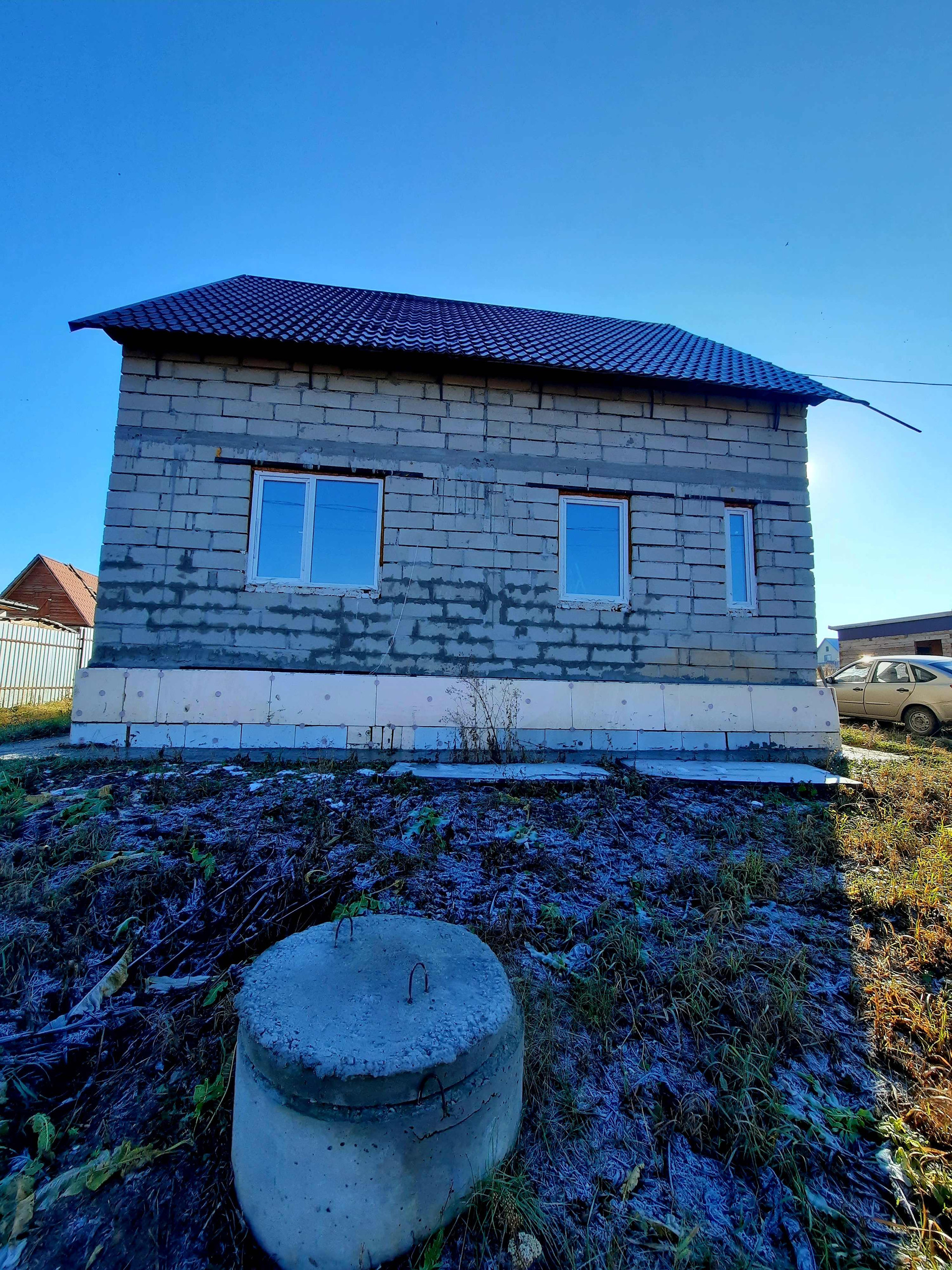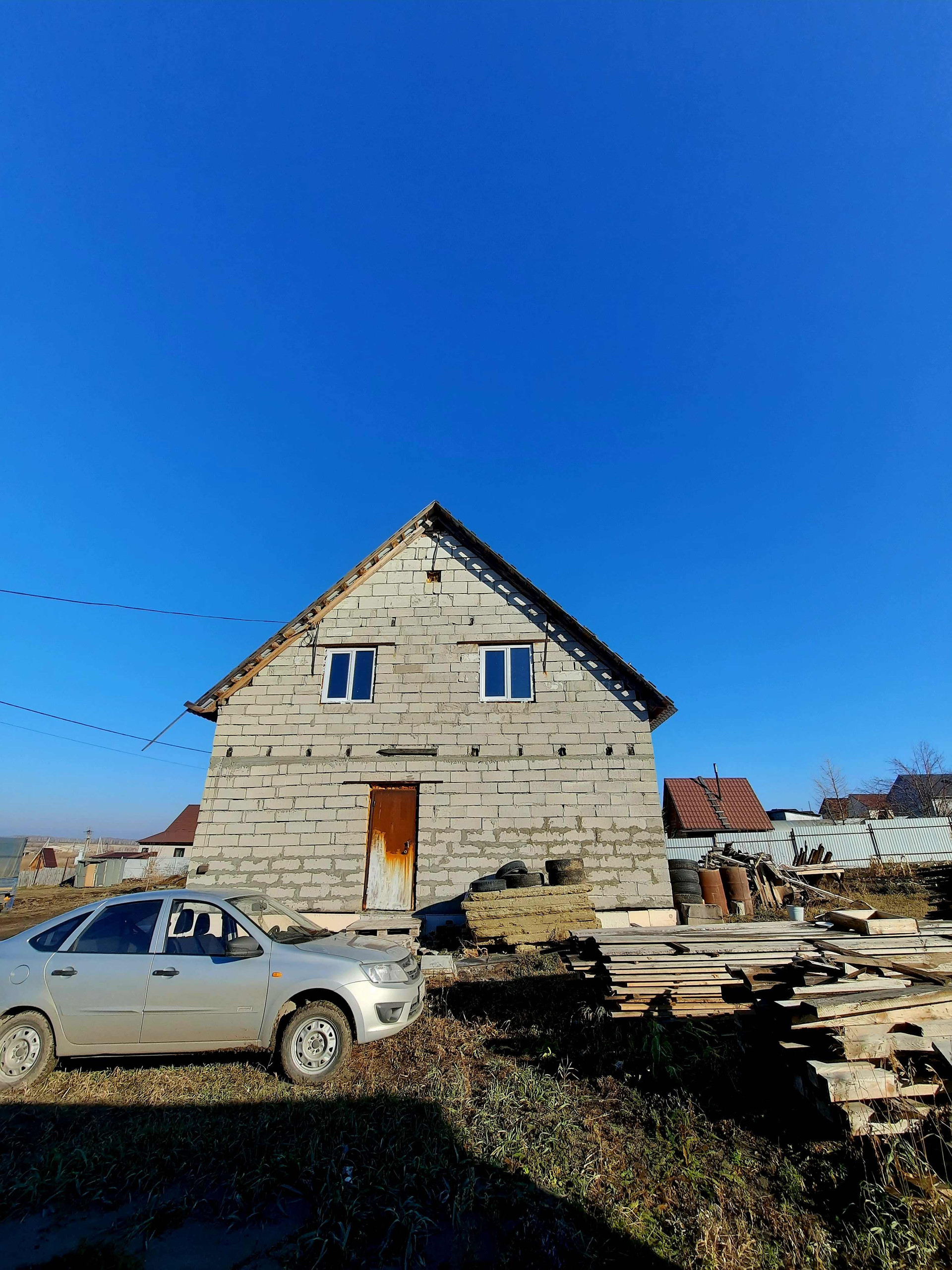 МАТЕРИАЛ стен- газоблок, крыша- металлочерепица. Пластиковые окна, пол бетонный. Под отделку.