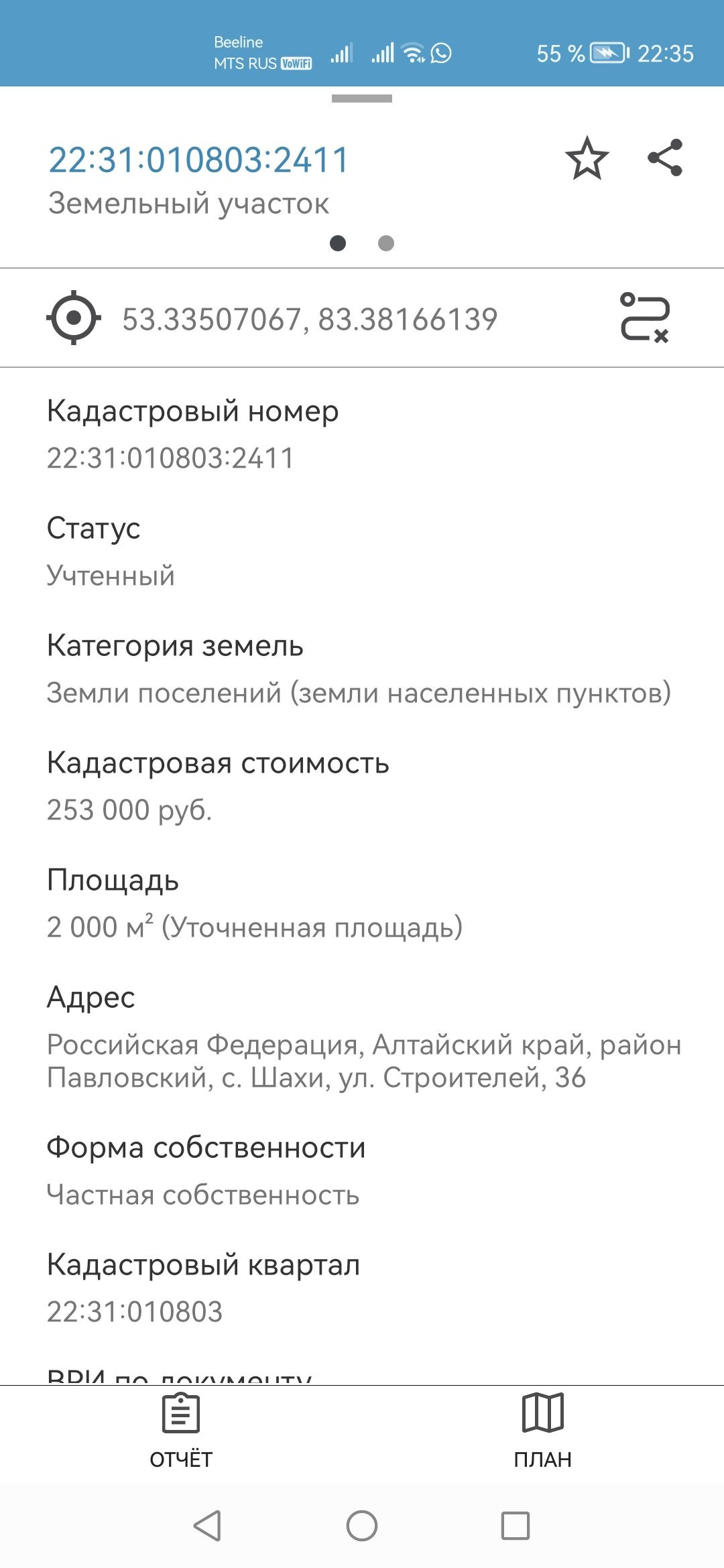Продается земельный участок площадью 2000 кв.м, расположенный по адресу Алтайский край, Павловский район, с. Шахи, ул. Строителей, 36.