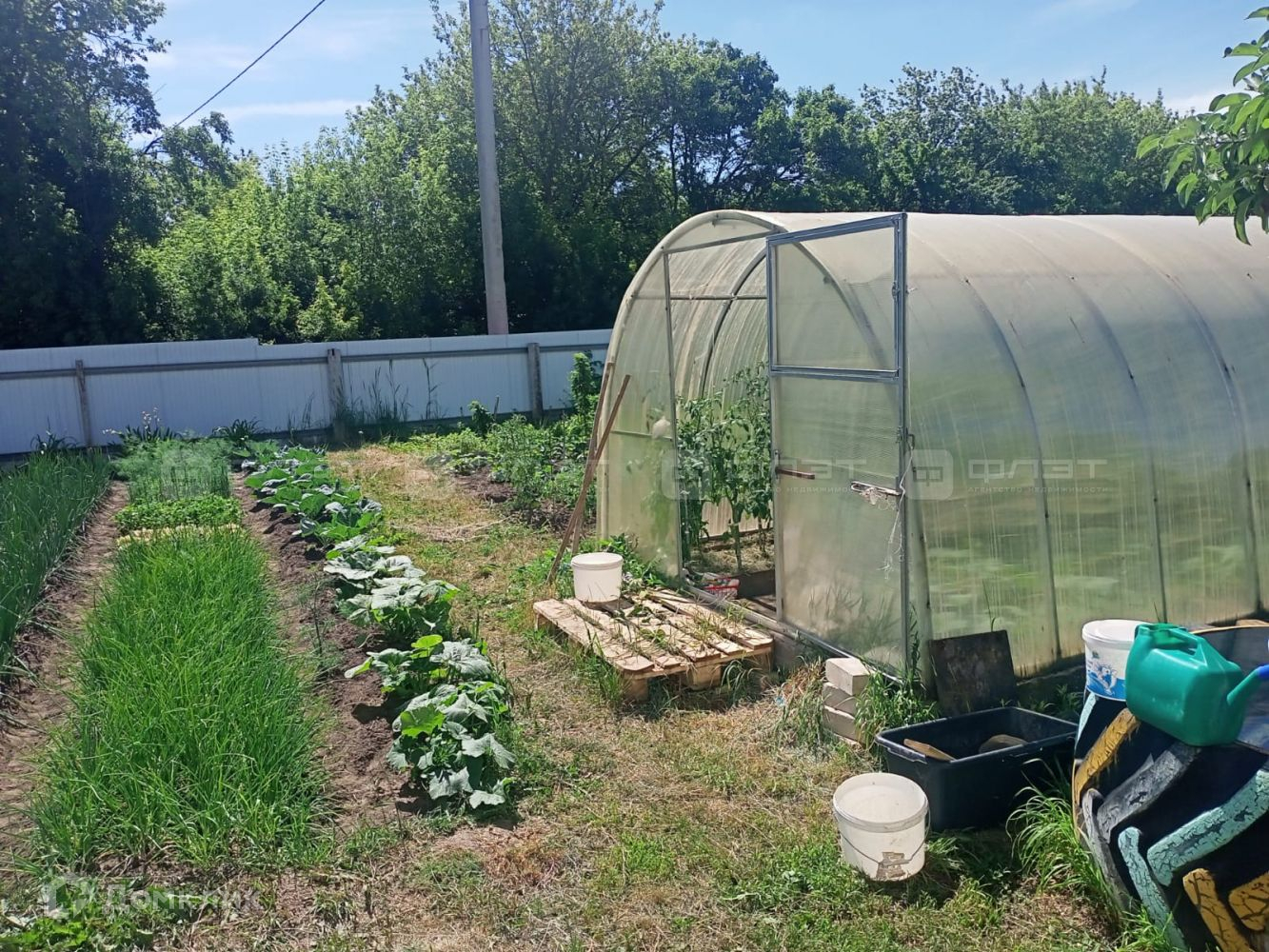 Земельный участок 27 соток, ровный, прямоугольный. По периметру есть забор, ухоженный огород с грядками (лук, чеснок, морковь, свекла, капуста, помидоры, огурцы), плодоносящие деревья (вишни, груши, яблони) и кустарники (крыжовник, смородина, малина), цветы, ягоды разных сортов. И даже больше, вложен большой труд, ухаживали с любовью, покупателю очень повезёт с большим и вкусным урожаем!На участке есть все для ведения личного подсобного хозяйства, гараж, сарай. Отличные подъездные пути, хорошие соседи. Торг обсуждаем.