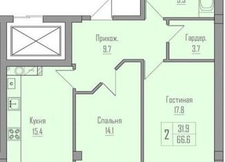 Продается 2-комнатная квартира, 66 м2
