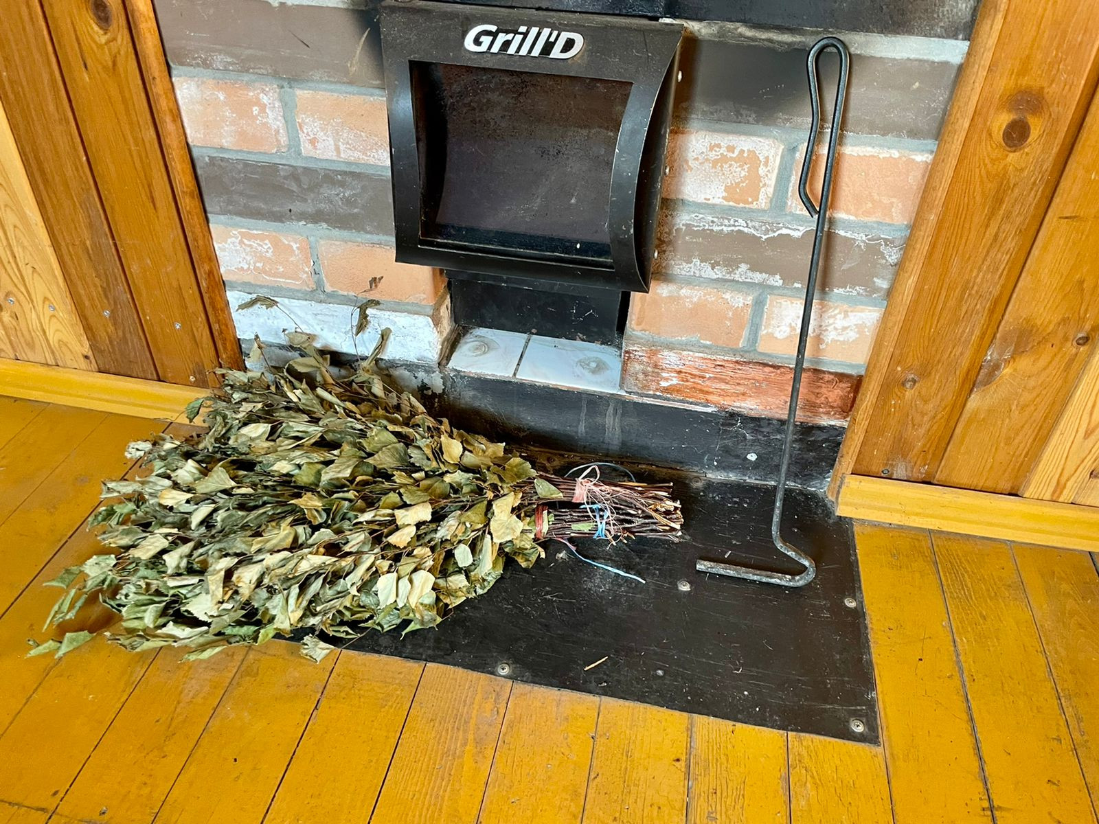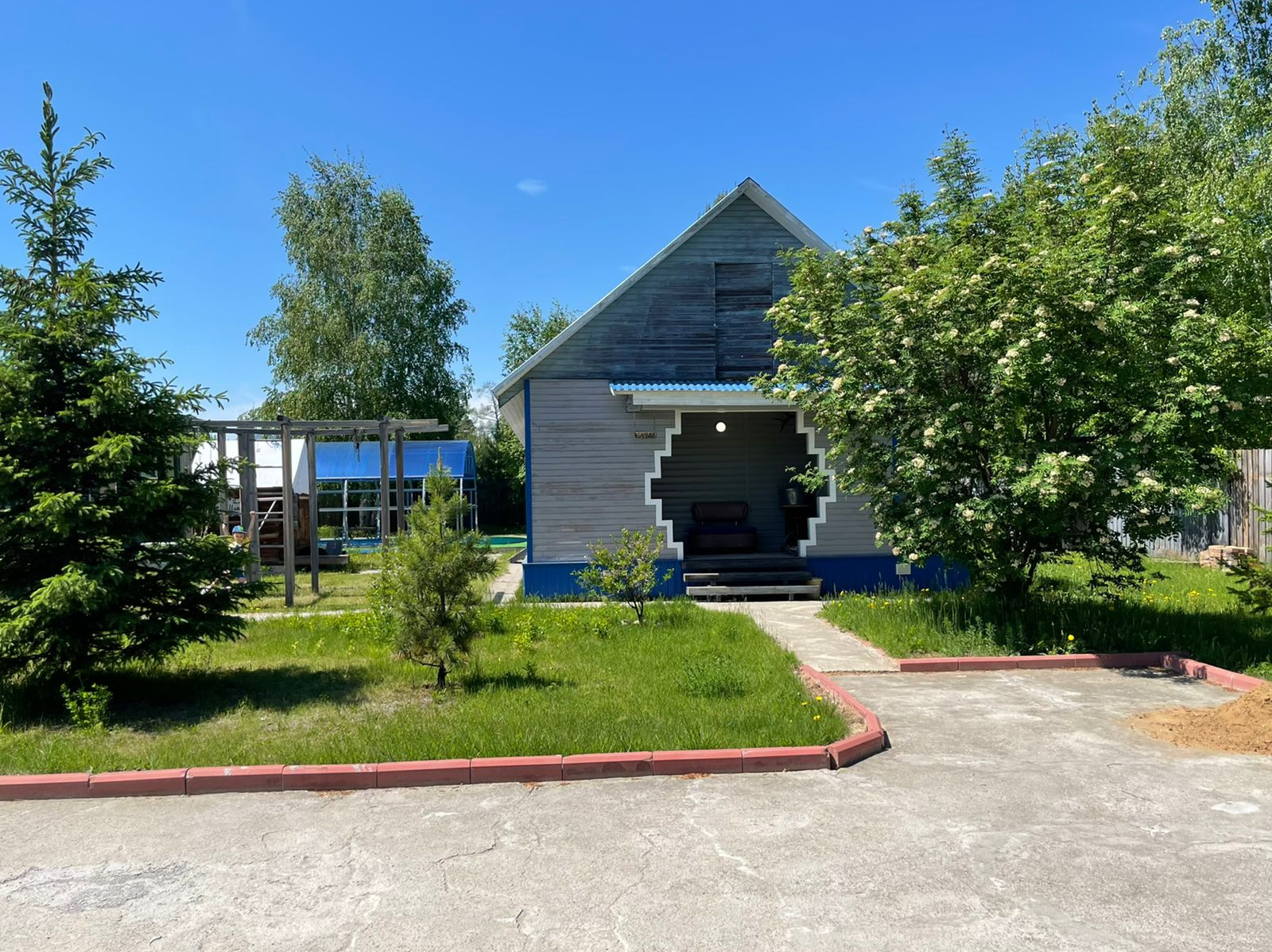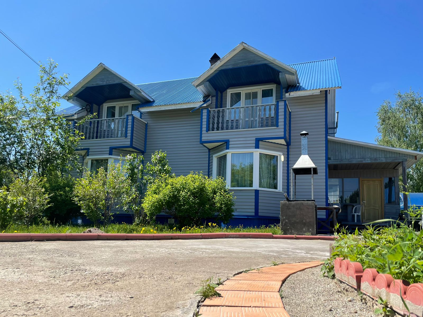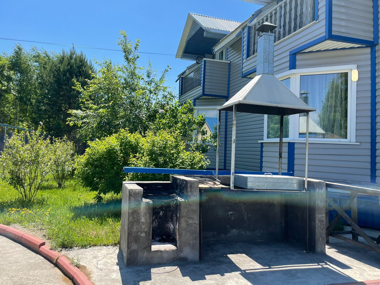 Крытая терраса со стационарным кирпичным мангалом.