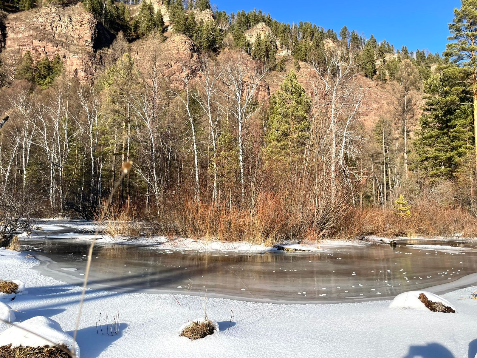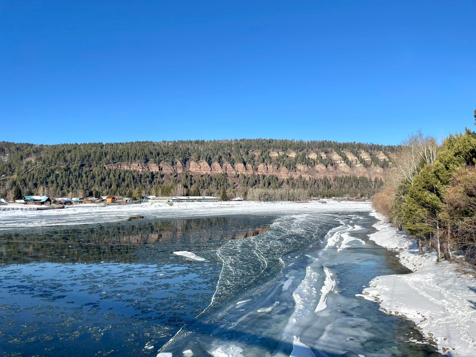 Уникальность его заключается в местоположении. Вряд ли где ещё сыщется такое сочетание, как участок на берегу таежной реки, несущая свои тихие воды у самого подножия величественной скалистой горы, которую в народе называют «33 богатыря». Это самое подходящее место, для того чтобы уединиться с природой.