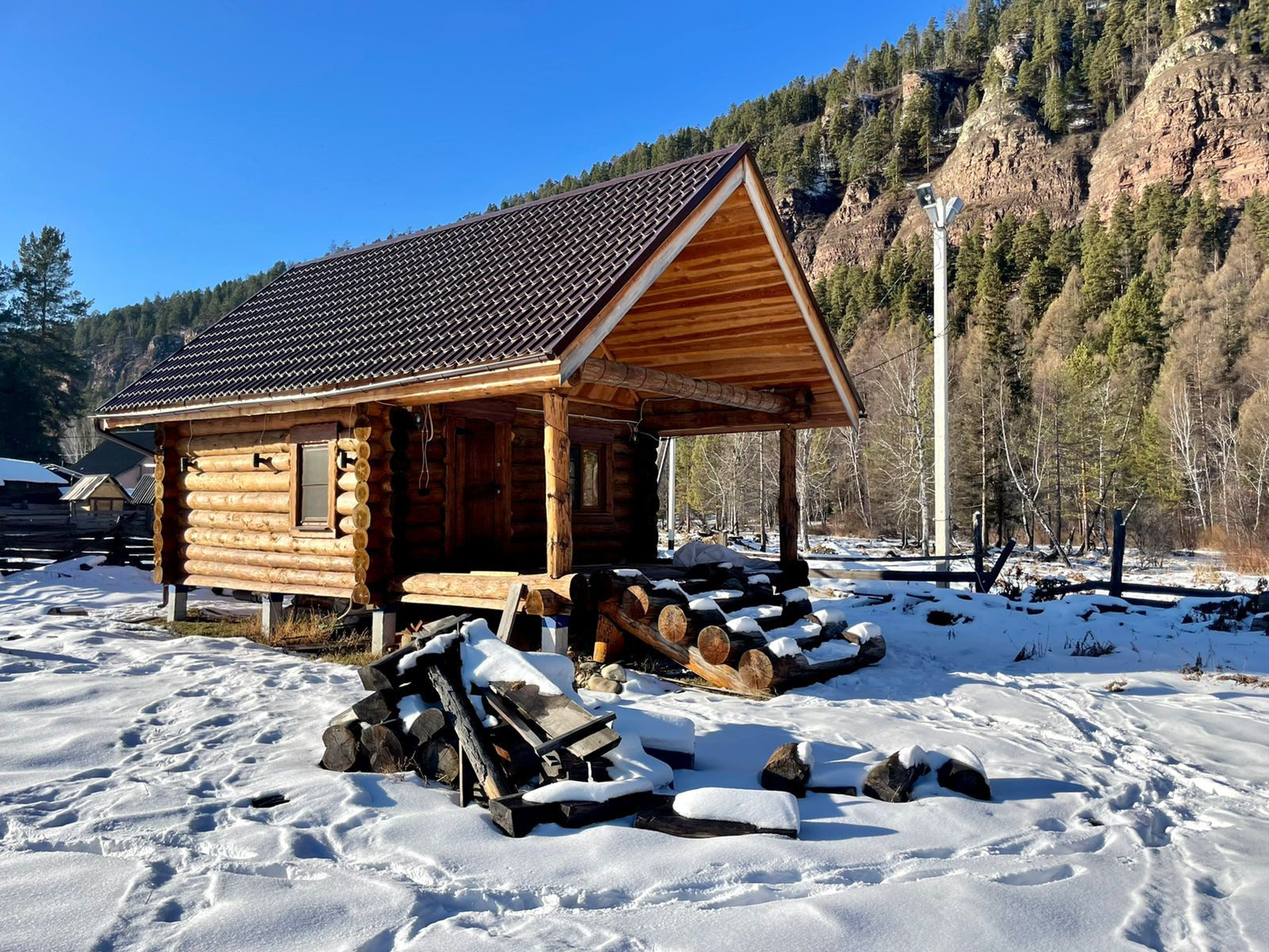 Материал строительства: лиственница, сосна, тесаное бревно