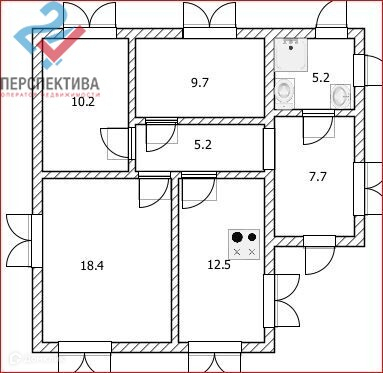 Площадь кухни 12.5 м2