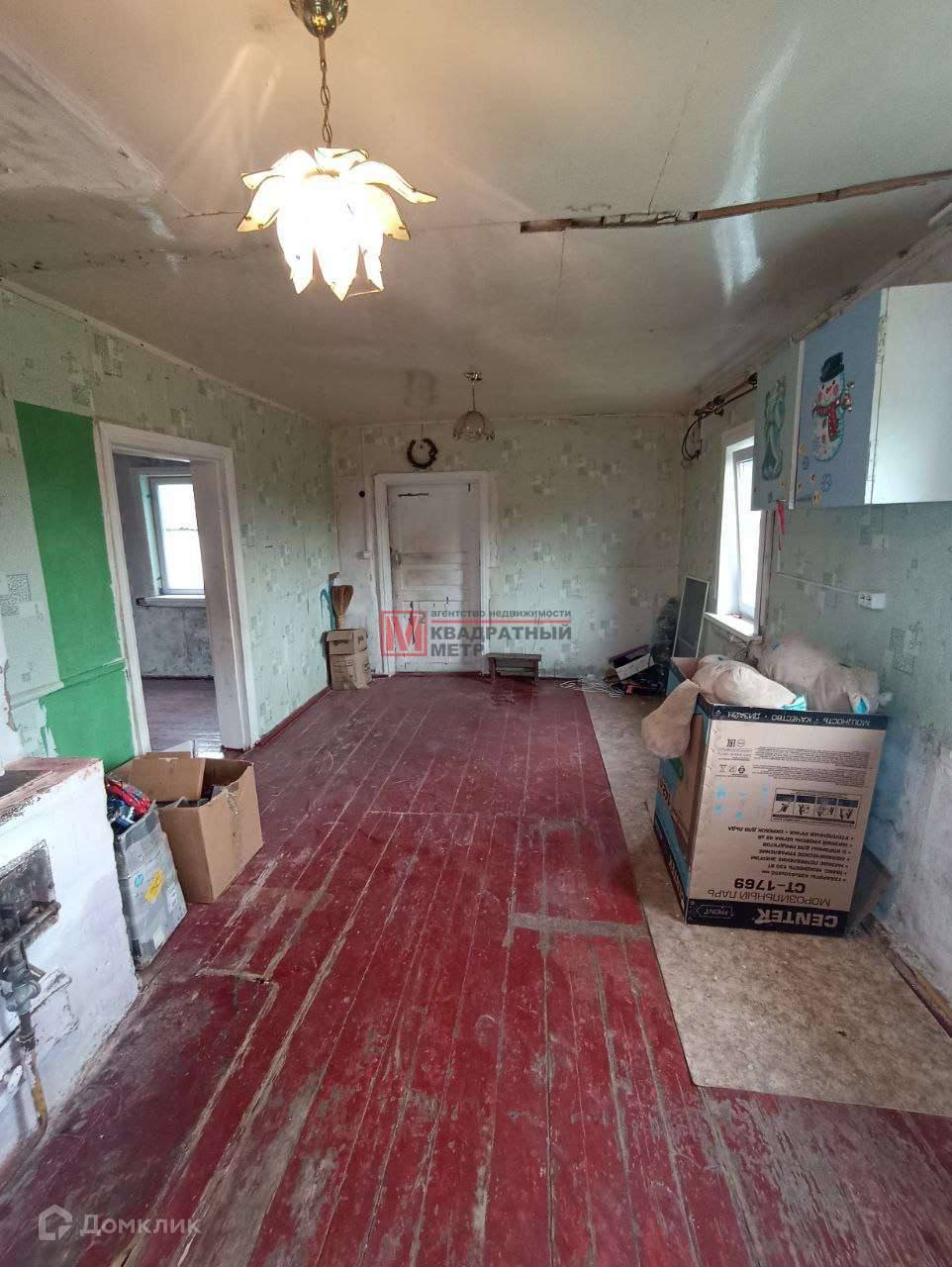 Планировка - веранда, две комнаты, кухня и помещение под санузел. По всему периметру имеется забор.