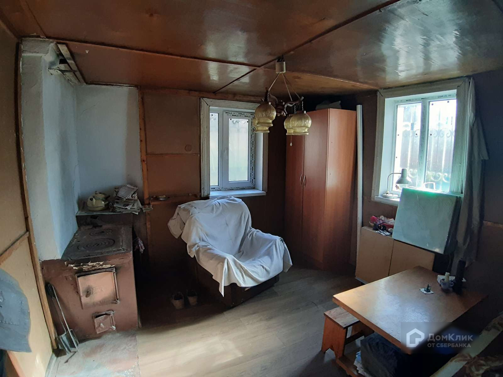 В домике 2 комнаты и веранда. Удобства на улице. Хоз. Постройки. Плодоносящий сад. Электричество подключено, вода - колодец.