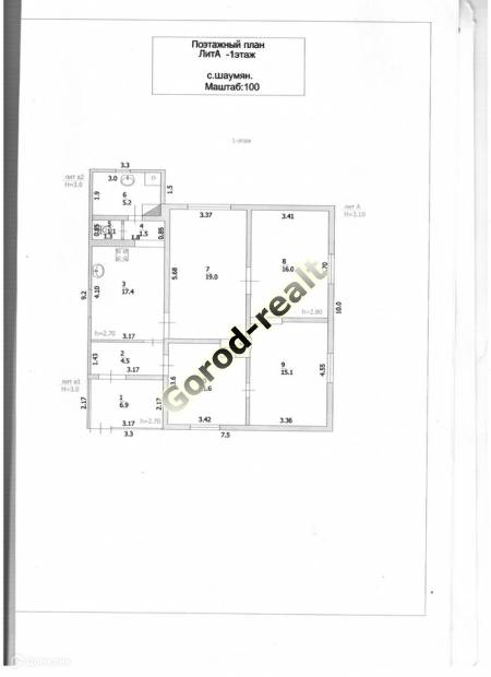 Высота потолков- 3м., окна металлопластиковые, покрытие полов- доска, линолеум и керамическая плитка в душевой, стены в комнатах оклеены обоями.
