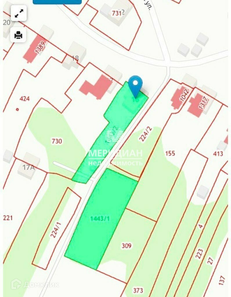 За домом ухоженный участок земли, отгороженный высоким металлическим забором, с кустарниками смородины и крыжовника. Площадь участка, на котором стоит дом составляет 1 112,22 кв. м. Второй участок, площадью 710.49 кв. м. находится рядом через тропинку.