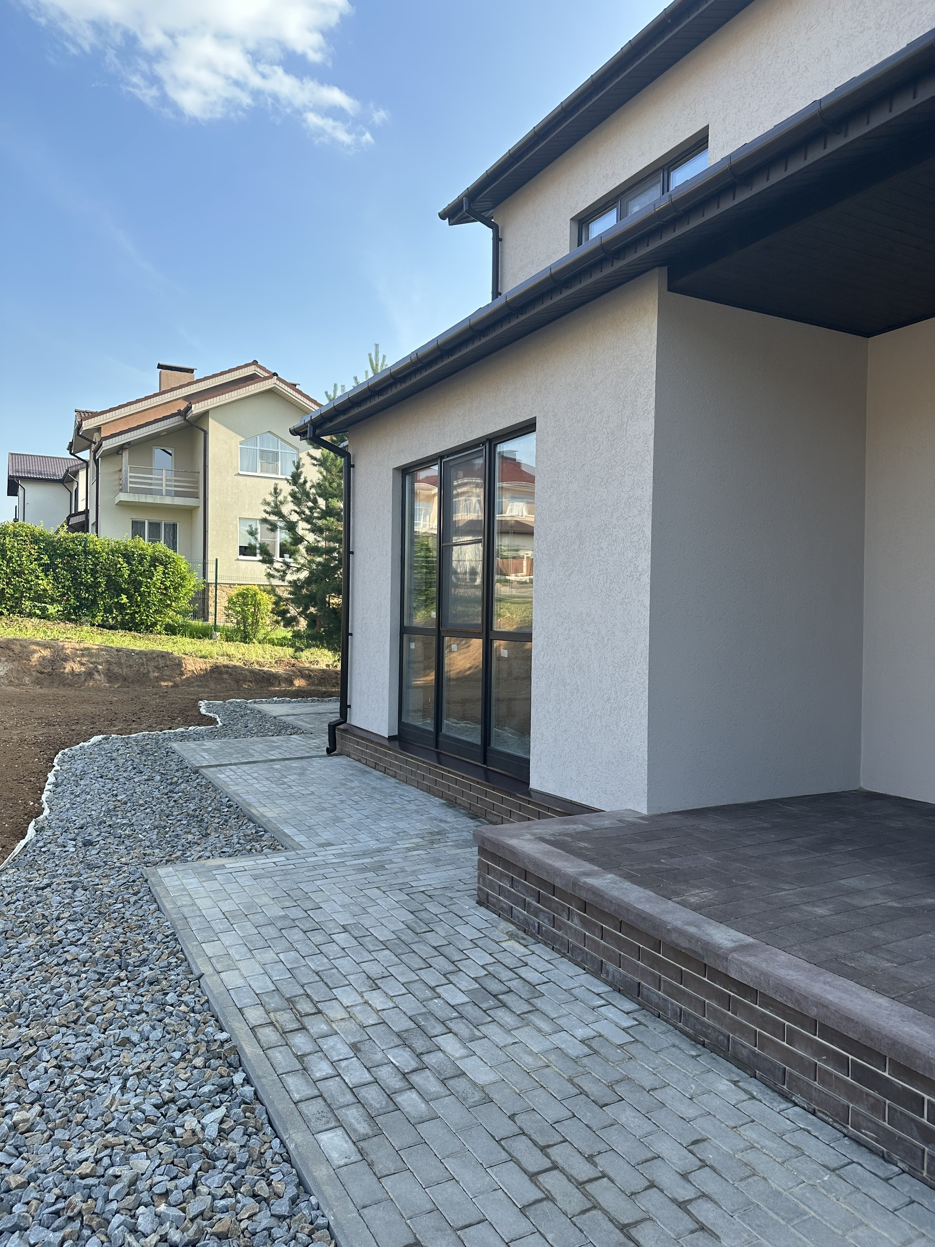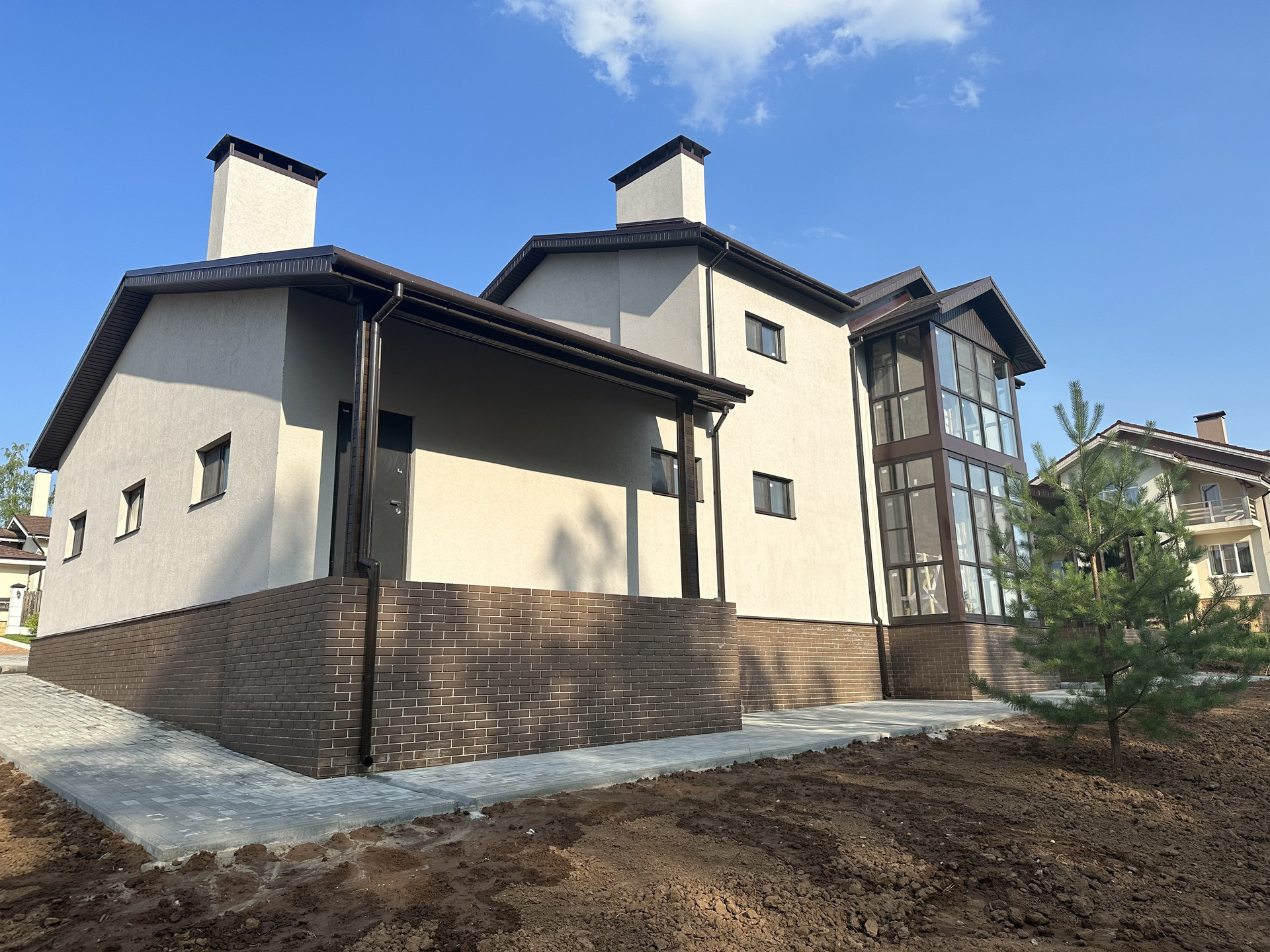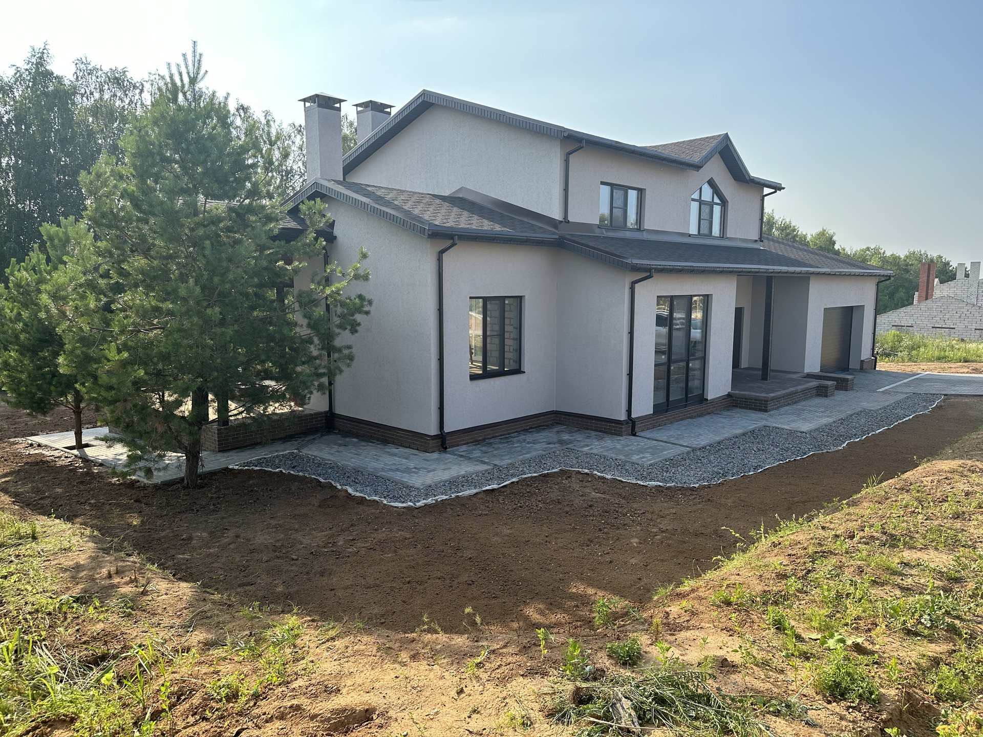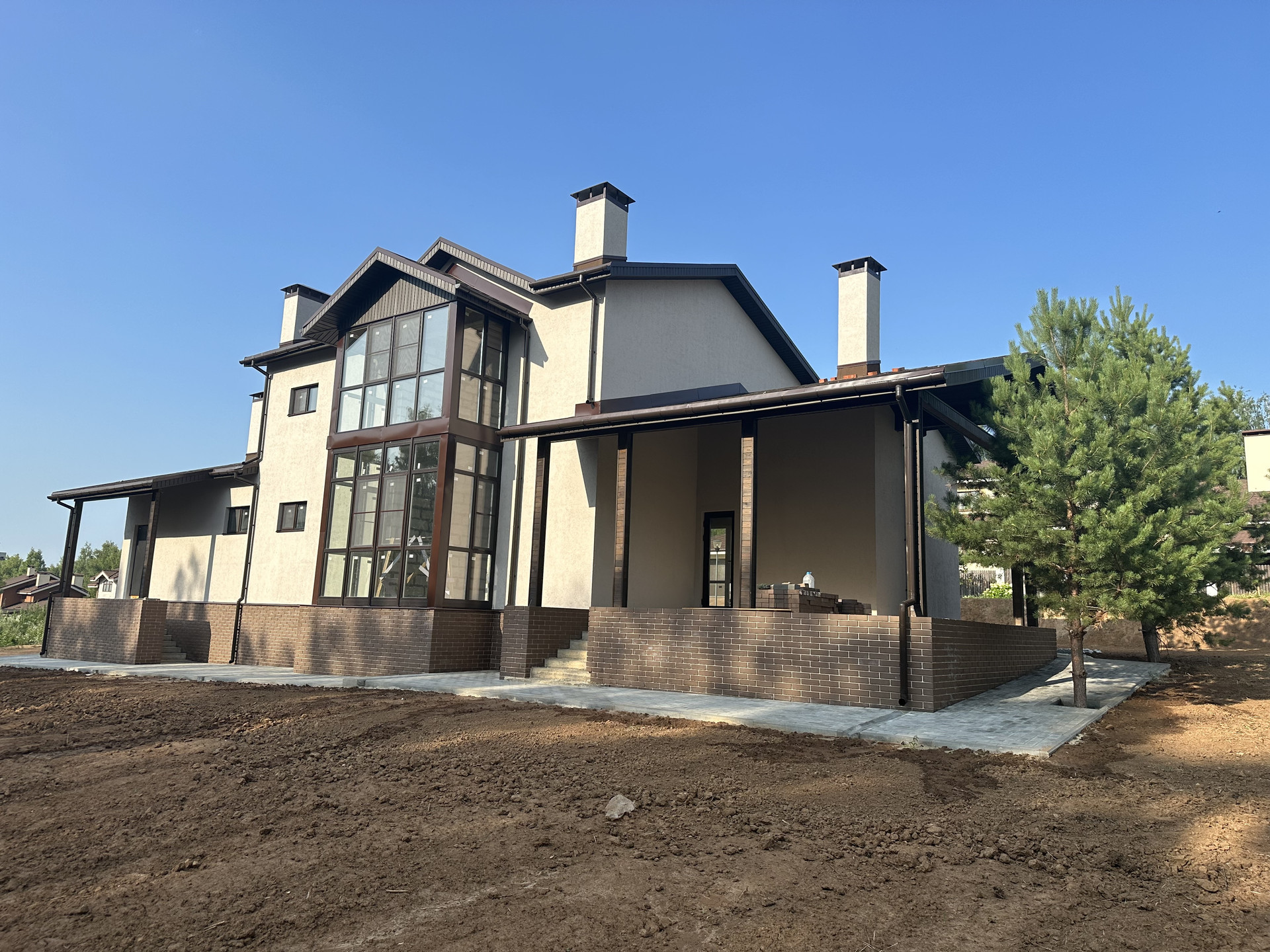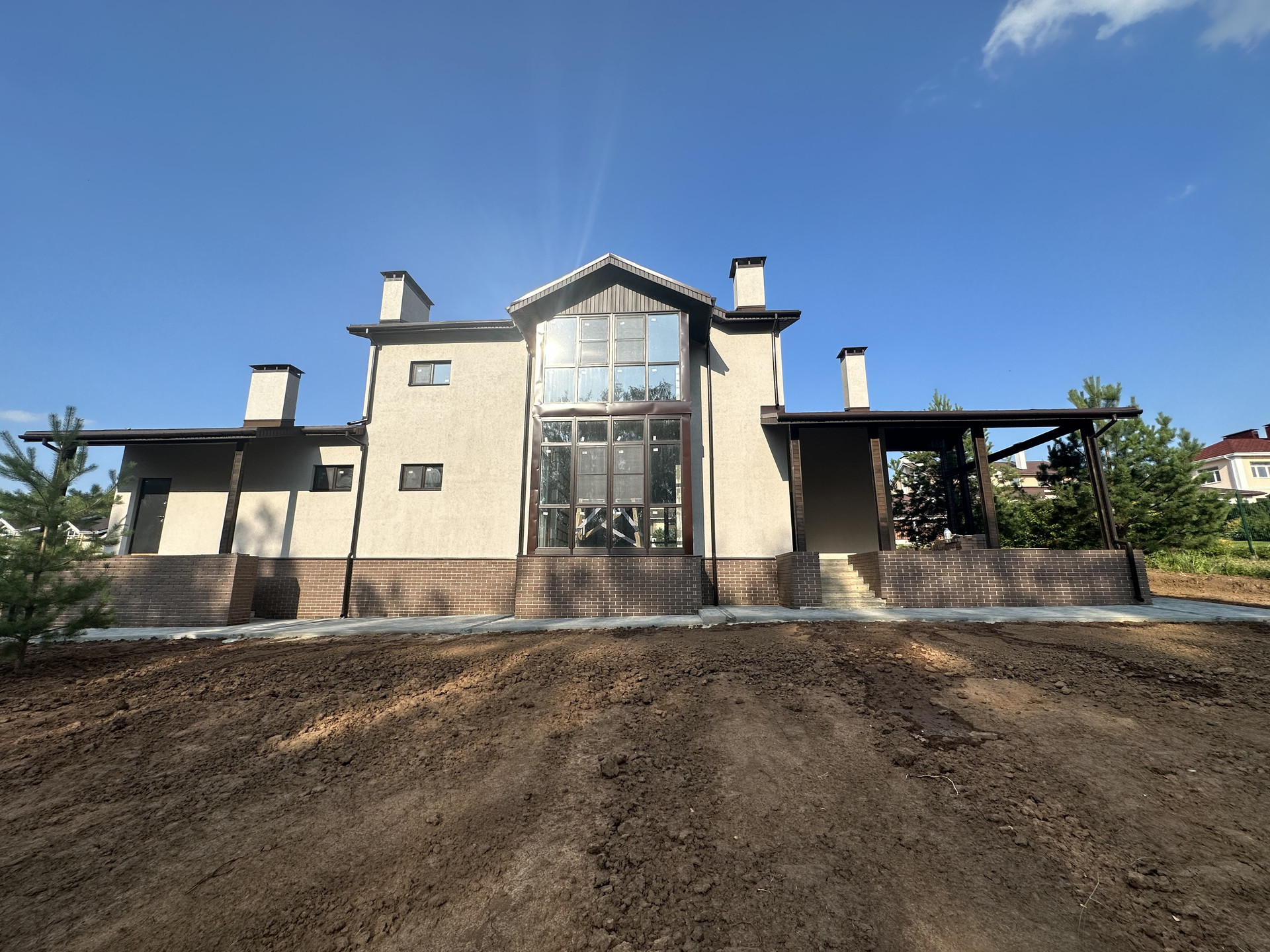 Снаружи дом полностью оформлен. Внутри Вы сможете реализовать свои дизайнерские решения и мечты, огромные окна в пол на обоих этаж, потолки в чистом виде после ремонта будут 3 м.