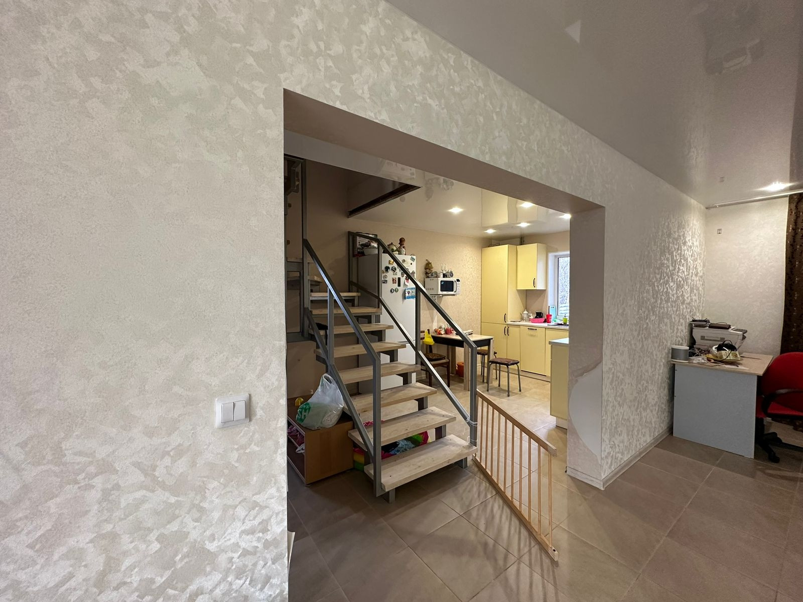 Первый этаж: теплый пол в керамограните, натяжные потолки, кухня со всей встроенной техникой: газовая варочная панель, духовой шкаф, посудомоечная машина, санузел, гардеробная