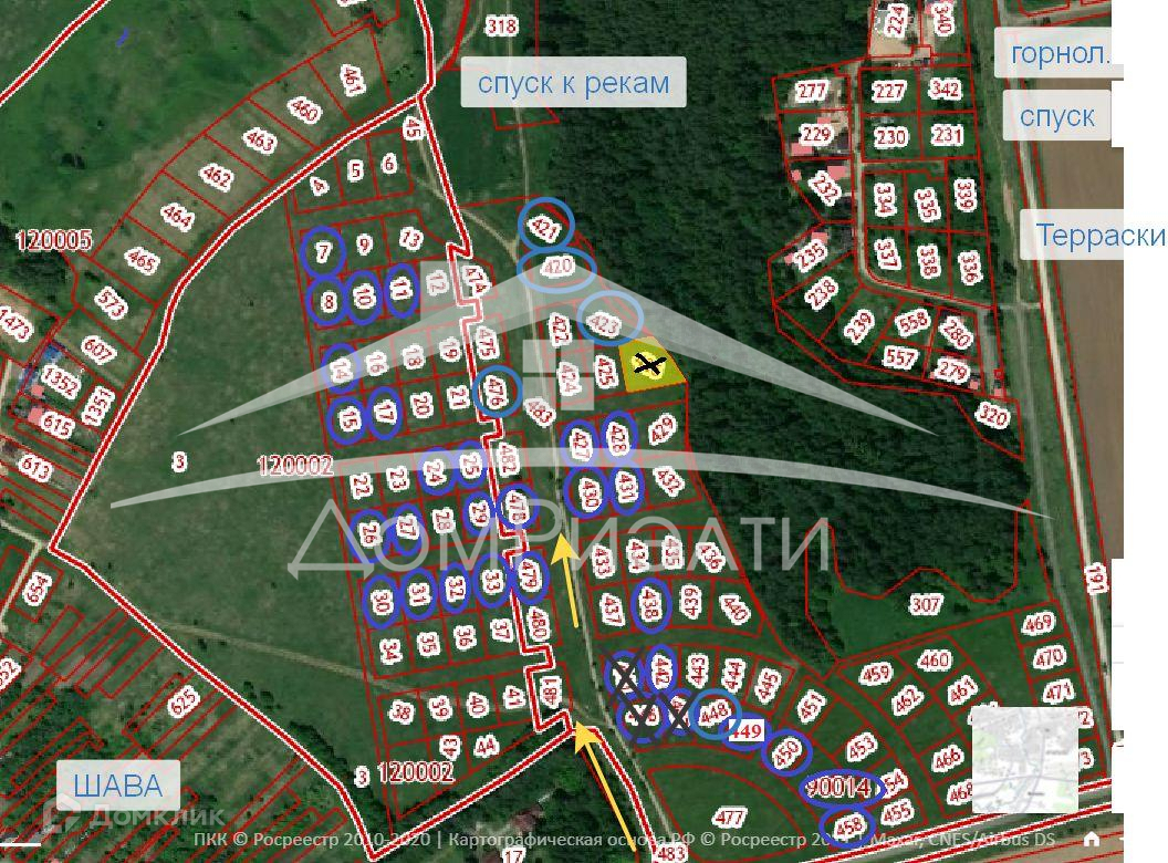 Участки видовые (прекрасный вид на реку, горнолыжка Терраски), соседей нет.