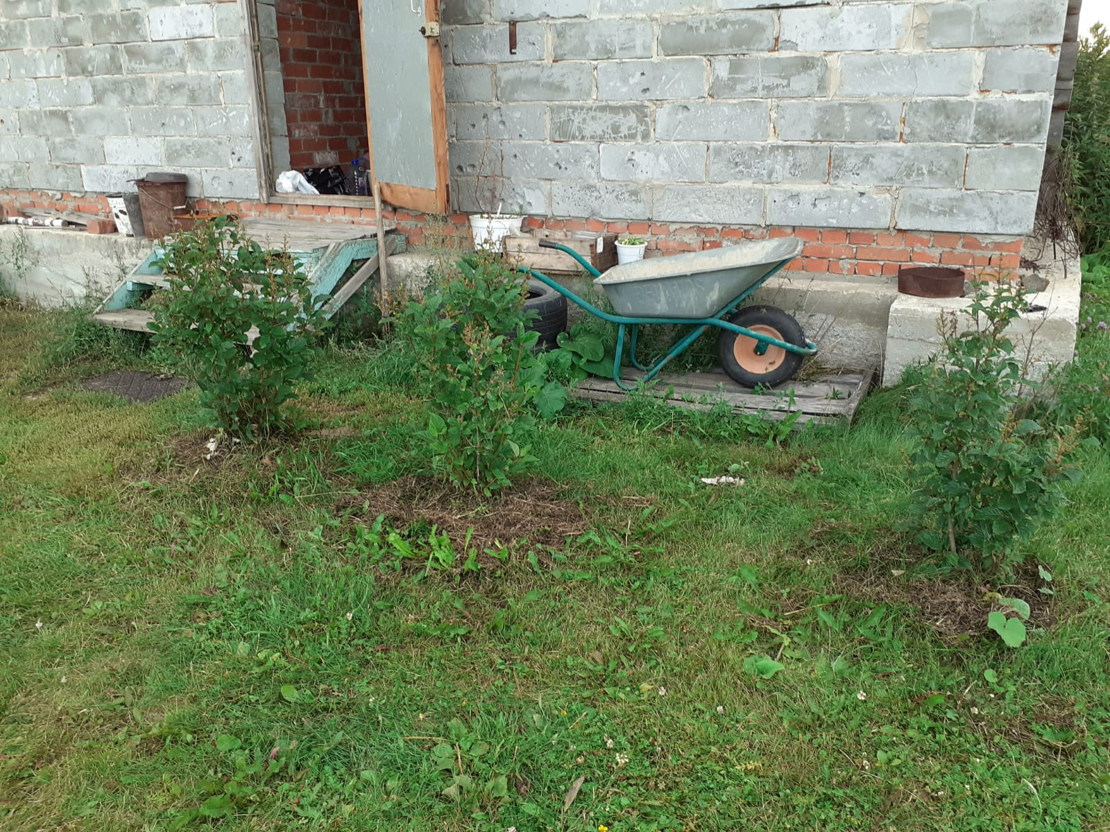 Без фасада.Земля / учаток/ плодородный, завозили тоннами перегной, землю. Можно судить по траве. Рядом у соседей глина и песок , даже трава не растёт.
