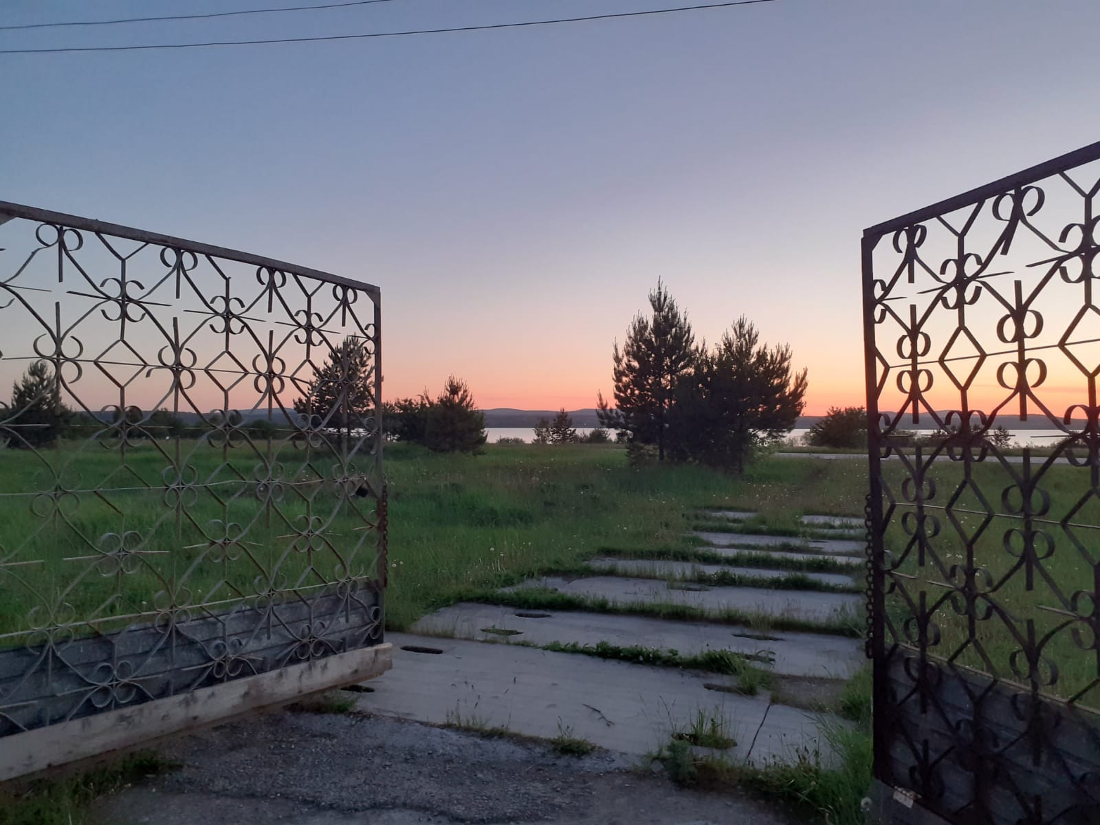 Территория огорожена забором из чёрного профлиста, и сетки.Ворота двустворчатые.