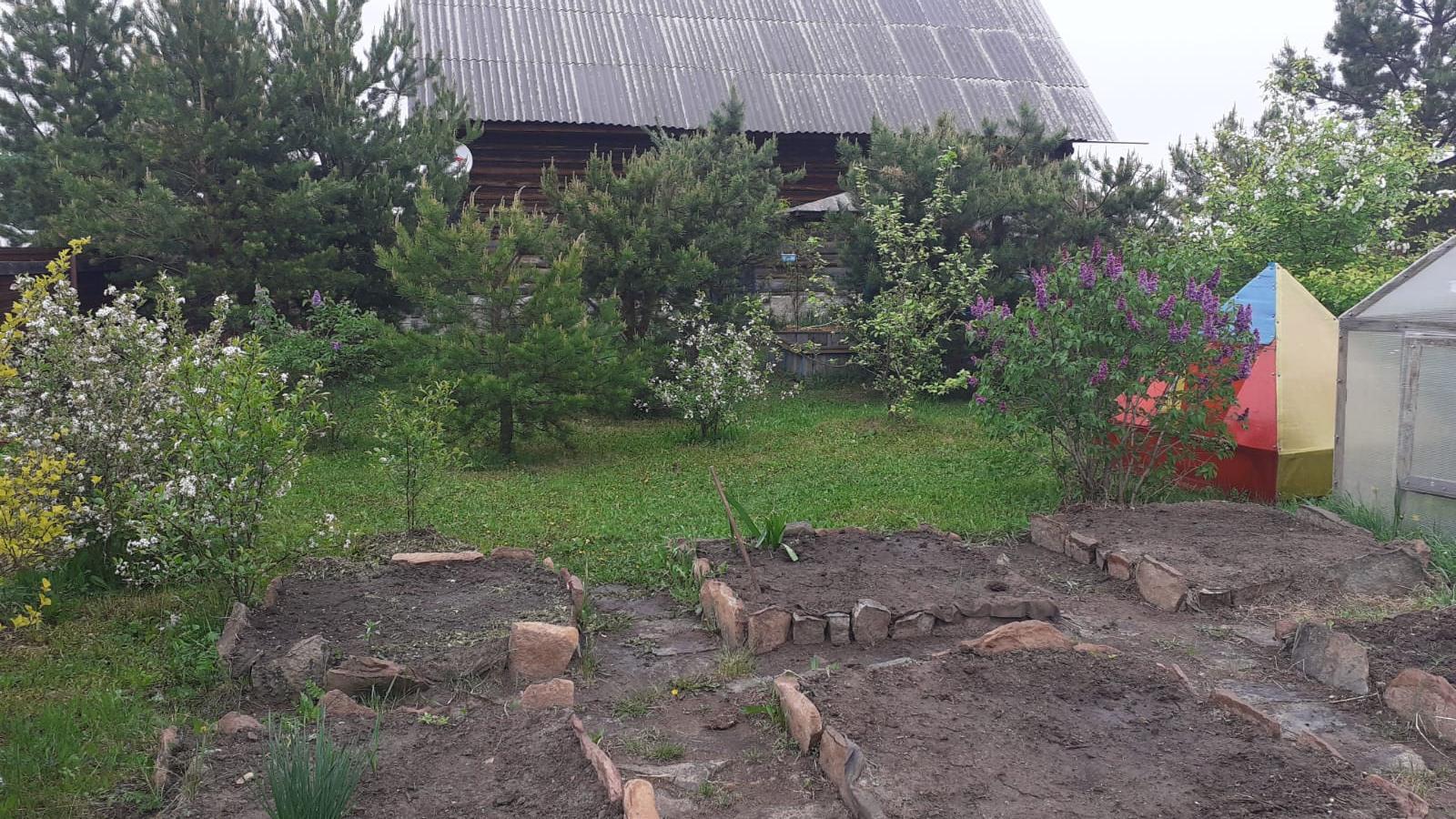 11. Дикорастущие: Сосны 3-6м- примерно 10шт., Берёза.Деревья и кустарники более 60 шт, сирень /живой забор/, облепиха, малина, крыжовник, смородина, жасмин, декоративные кустарники, кедр и тд.Фундамент под беседку.В доме и пристрок площадь, под свободную планировку, ванную и туалет, без перегородок.Остаётся частично инструмент, мебель, посуда.
