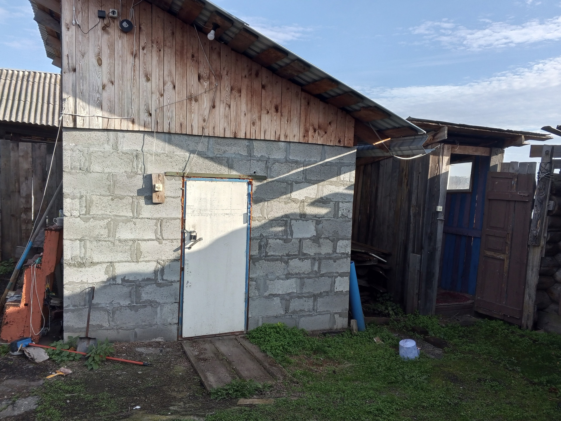 Участок 21 сотка, на нем есть новая баня и теплица. Хорошая, разработанная земля. Газ проходит по границе участка. Вода из колонки, которая  находится в 10 метрах  от дома. Есть летний водопровод для полива.