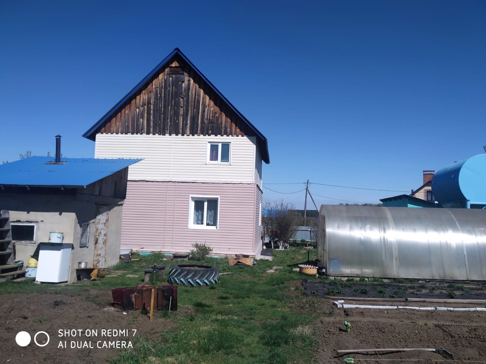 Дом 2 х этажный , 122 кВ. метра ,год постройки 2014 год, Земля 17 соток . Фундамент - бетон, стены шлакоблок, наружная отделка- виниловый сайдинг, крыша - профнастил.    Первый этаж из шлакоблока, второй этаж из бруса два гаража, баня из шлакоблока, дровянник, три теплицы, хлев для животных из шлакоблока, кочегарка отдельная из шлакоблока, туда можно заводить газ, газа в деревне пока нет, отапливается дом электричеством, электрический котёл хороший, новый, современный, дорогой, находится прямо в доме, ну и по всему дому отопление батареи. Все строения покрыты профнастилом.