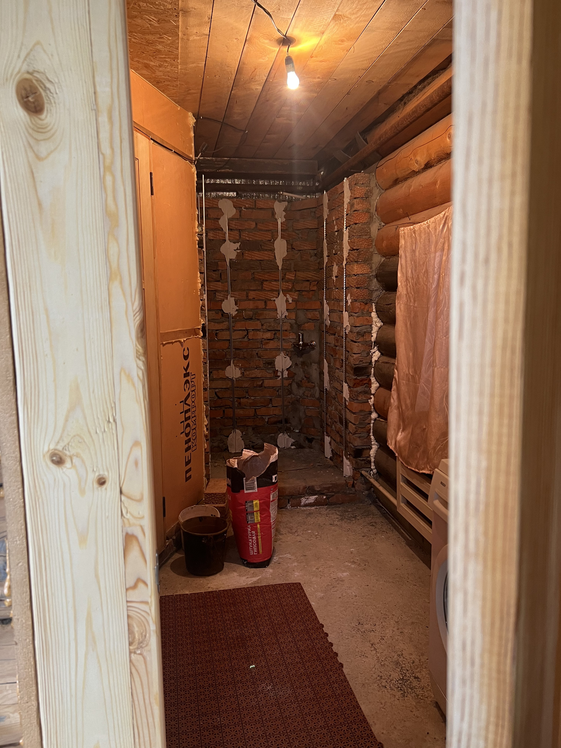 В самом доме отдельный вход в баню, очень удобно, баня обшита выгонкой, жаркая, печь изготовлена по чертежам печей термофор, бак 80л . По совместительству с баней подготовленно место под душевую: подведена горячее и холодное водоснабжение.( подготавливается под плитку)