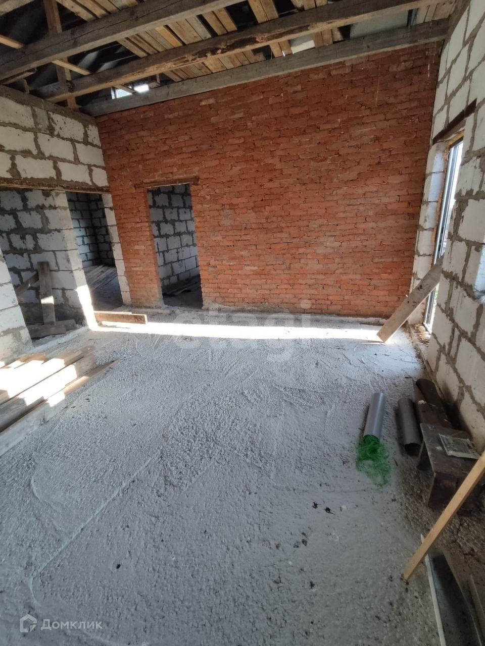 Дом расположен в живописном месте. Основные характеристики: материал дома-блоки аэробел, крыша - металлочерепица, фундамент ленточный, окна пластиковые, дверь входная металлическая, требуются работы по завершению планировки второго этажа. Водоснабжение- централизованное. Канализация предусмотрена на личный септик. Газификация по улице. Электричество подведено для строительства.