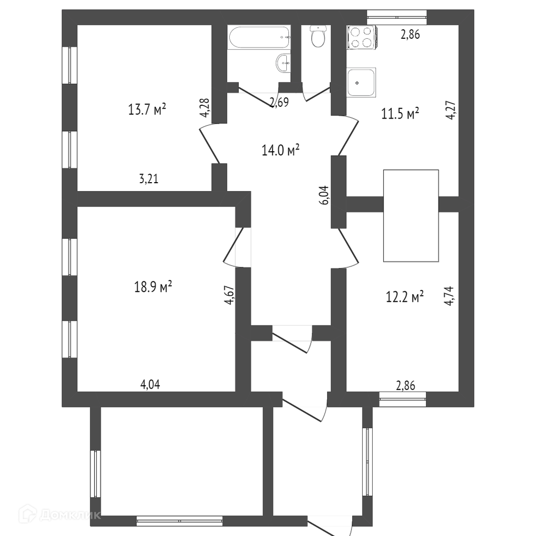 Общая площадь 76.6 м2