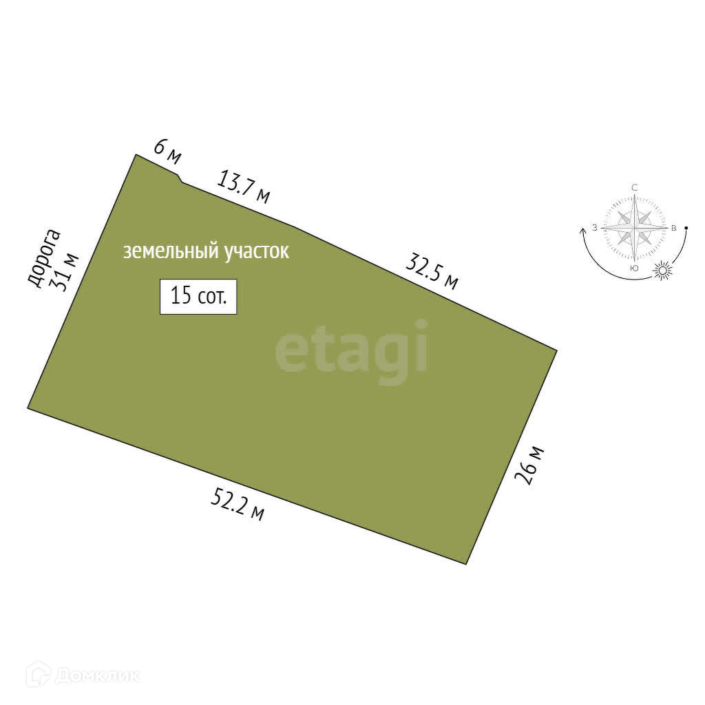 Площадь участка 15 сот.