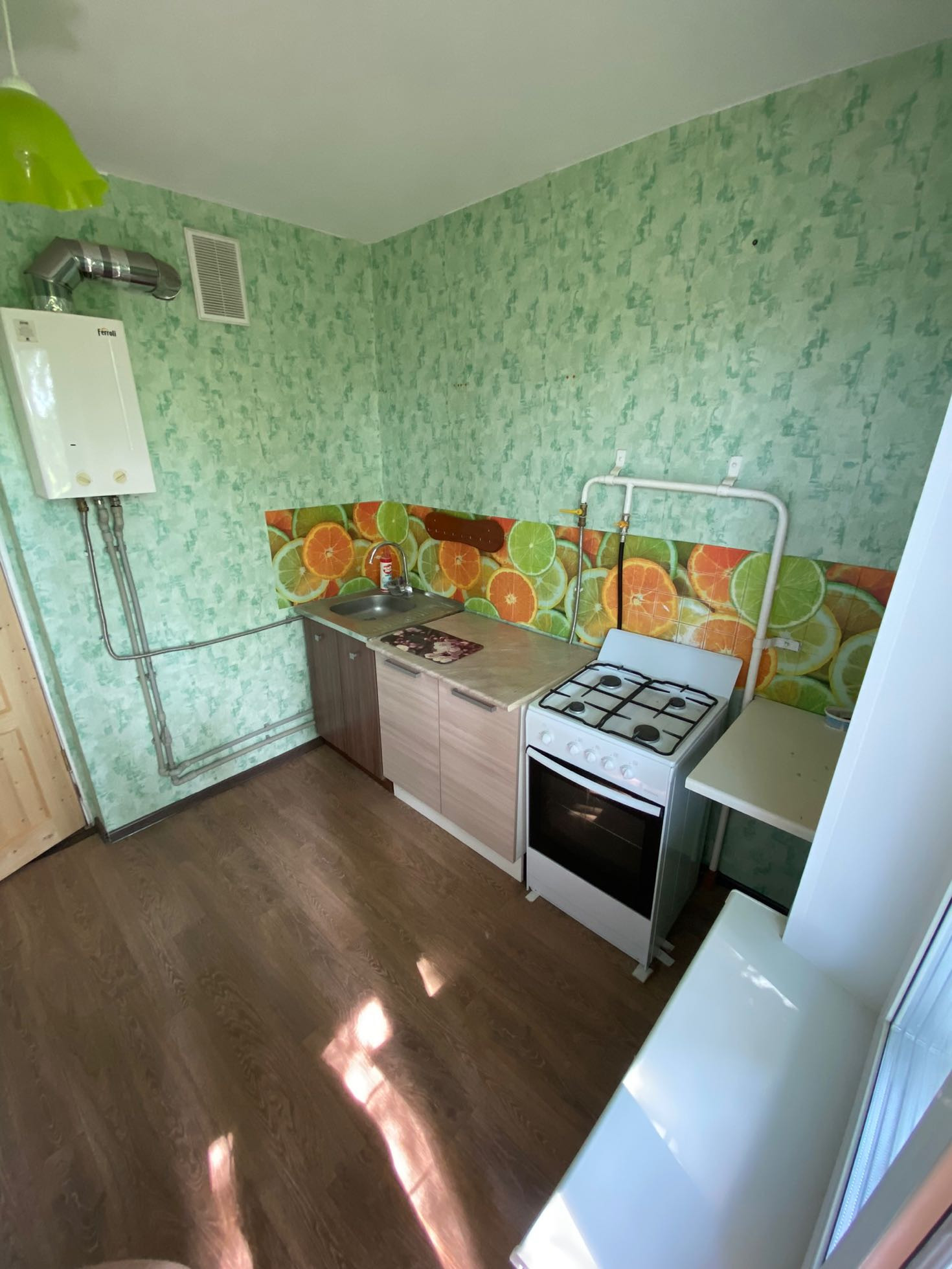 Квартира расположена на 3 этаже 3 этажного панельного дома. Санузел раздельный. Длинный балкон, выход на который осуществляется из кухни и из комнаты. Просторная кухня и светлая комната. В квартире заменены трубы, установлены приборы учета, газовая колонка, новая газовая плита, новые радиаторы, установлены пластиковые окна. Напольное покрытие линолеум. В квартире выполнен косметический ремонт.