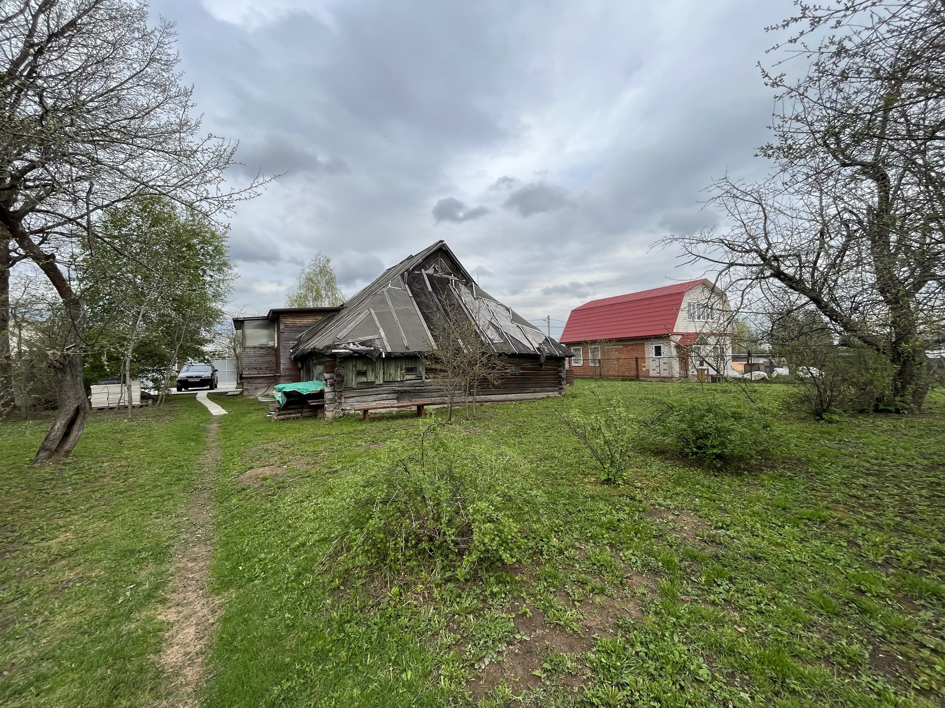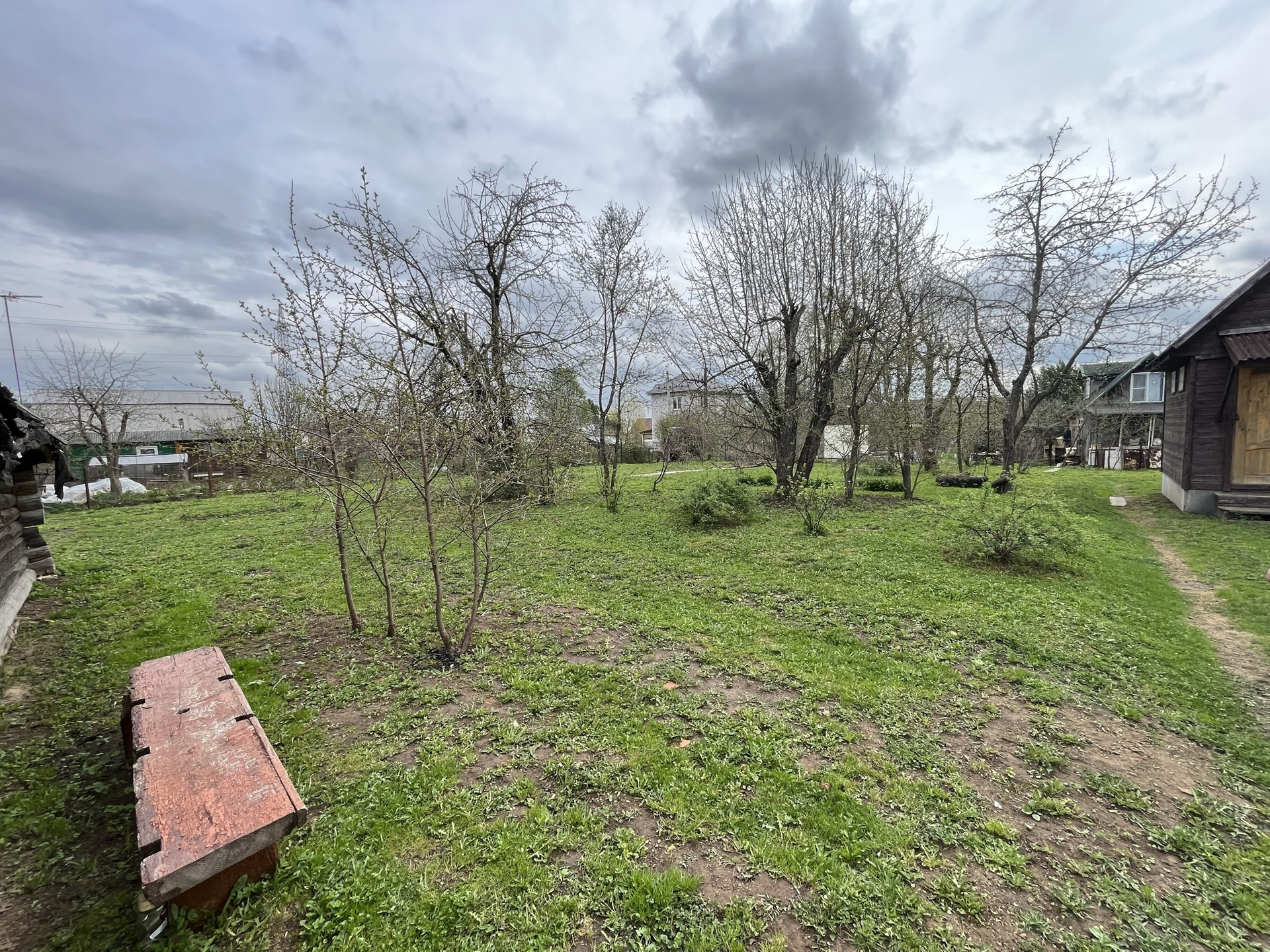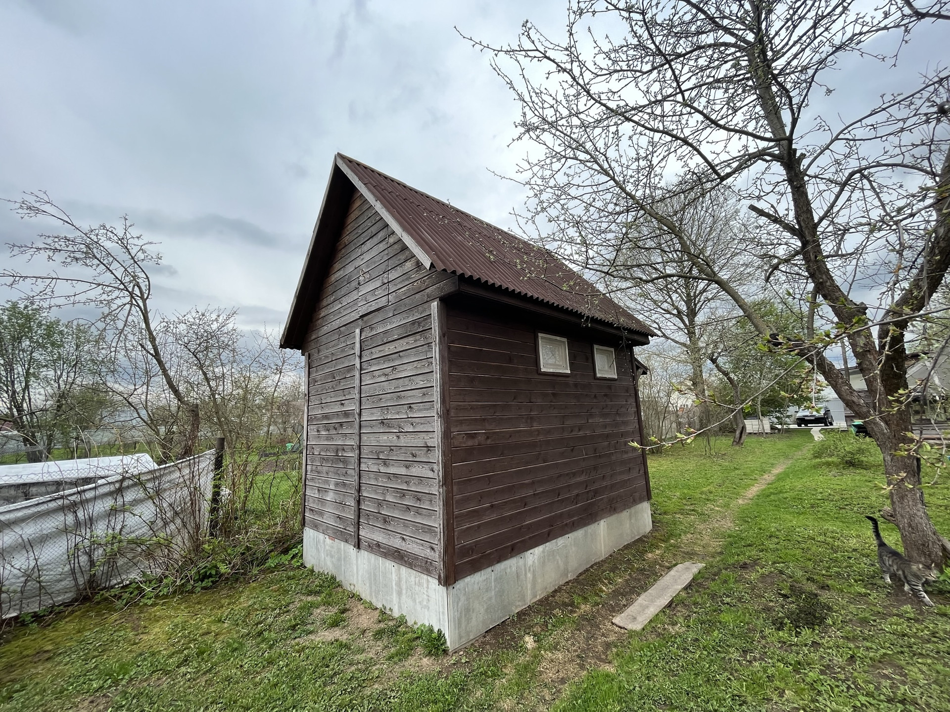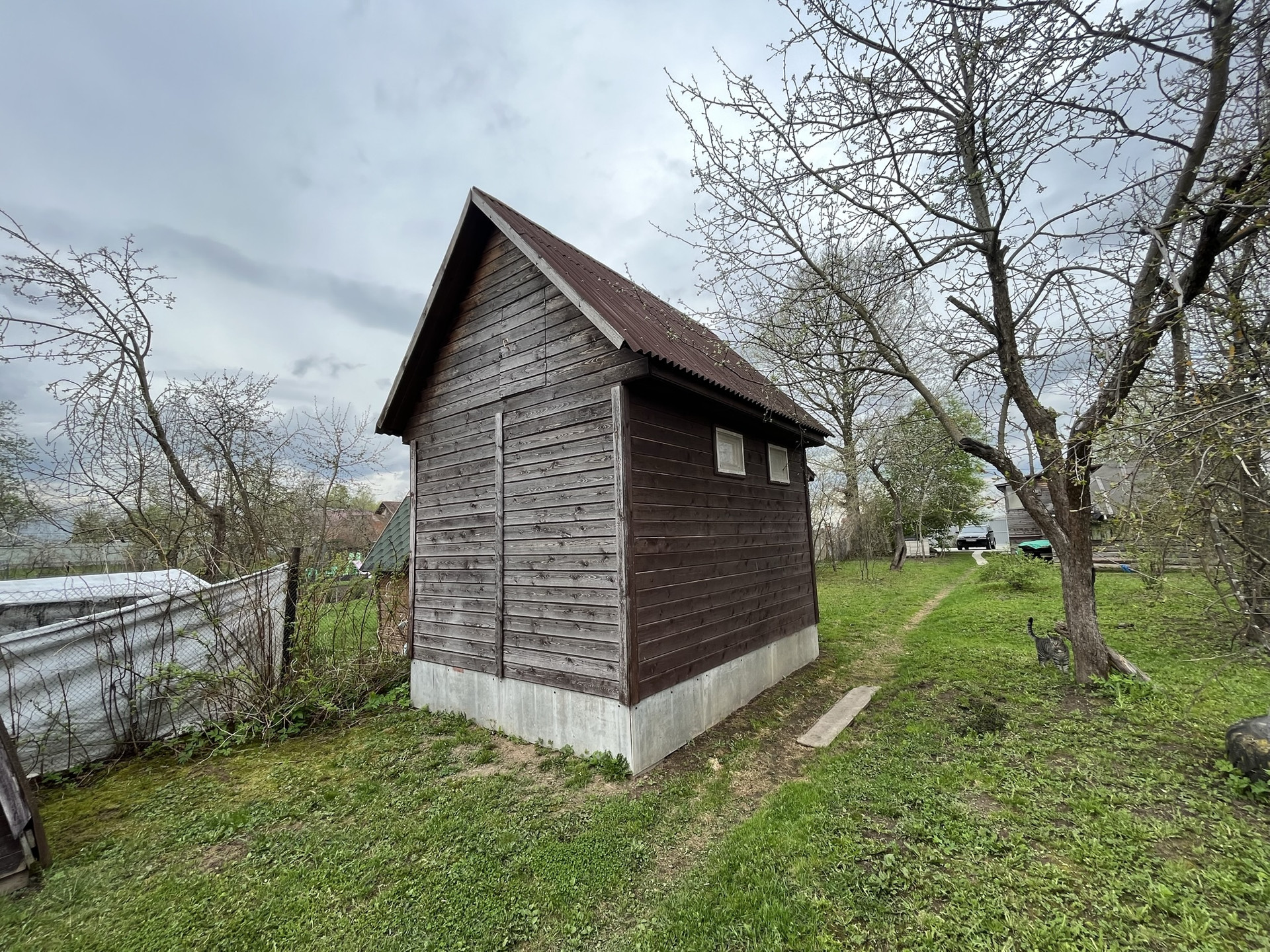 на участке есть баня на дровах, множество садовых деревьев