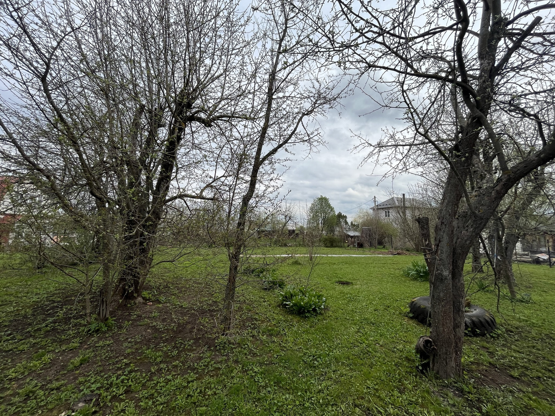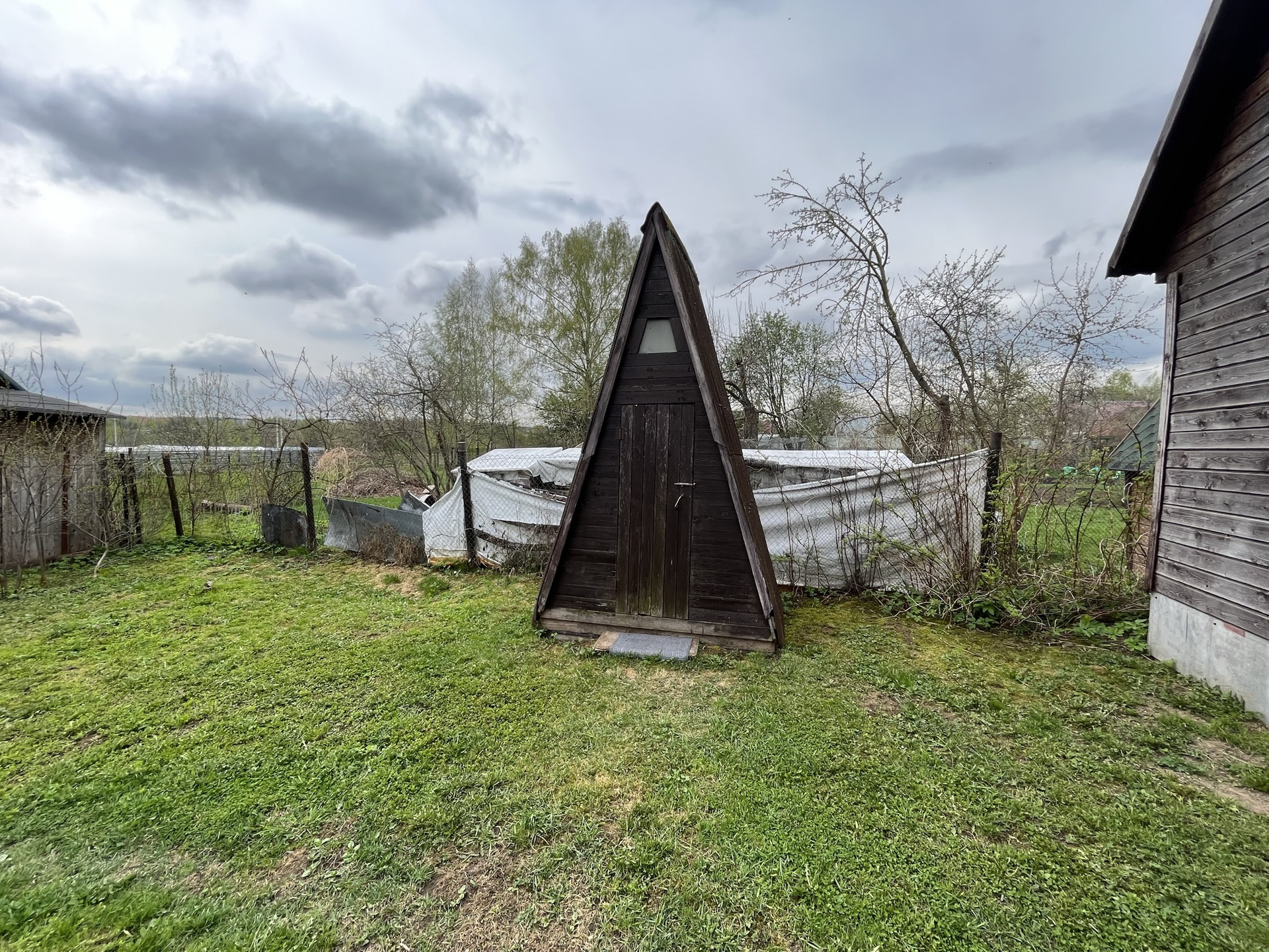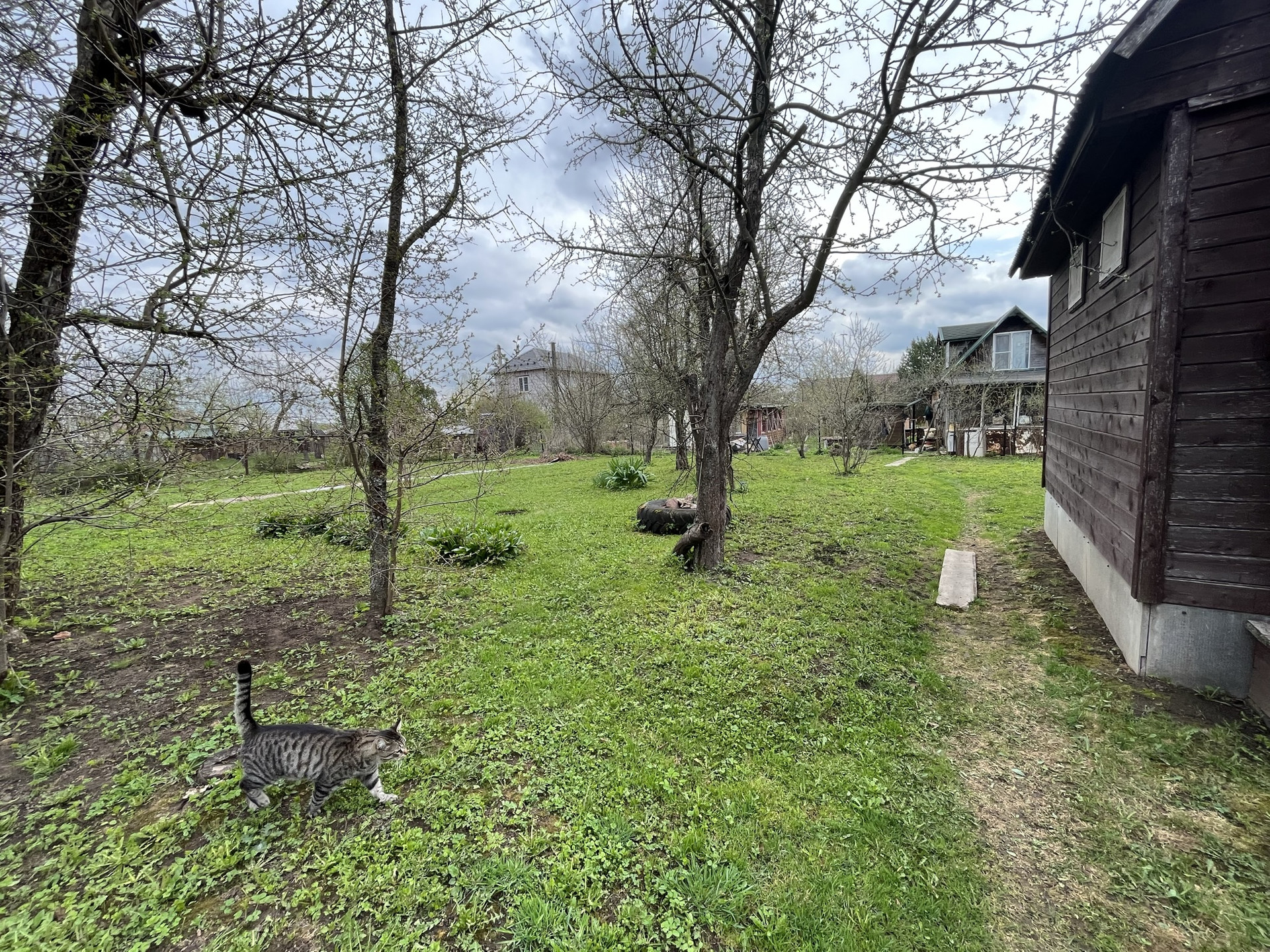 на участке есть баня на дровах, множество садовых деревьев