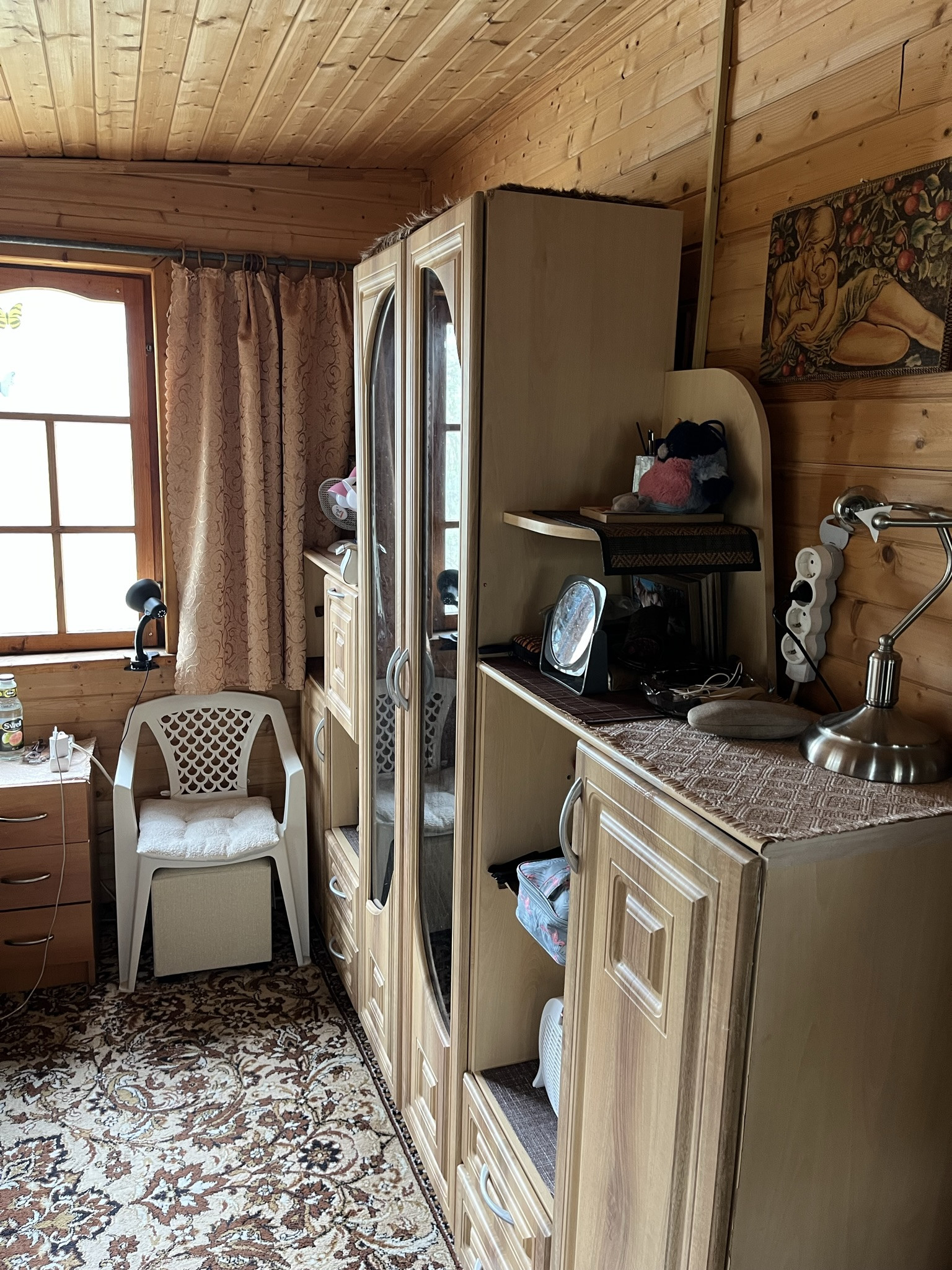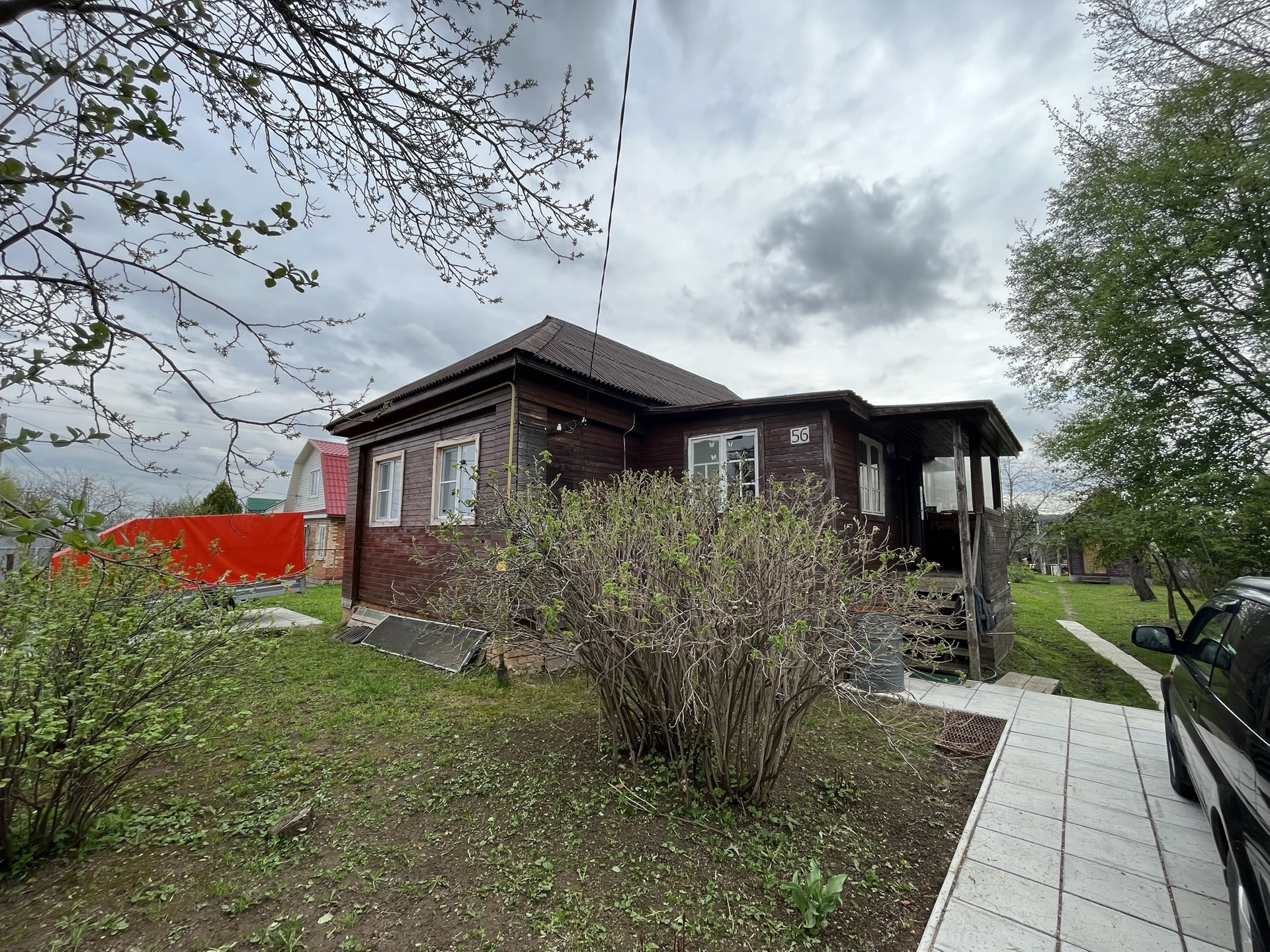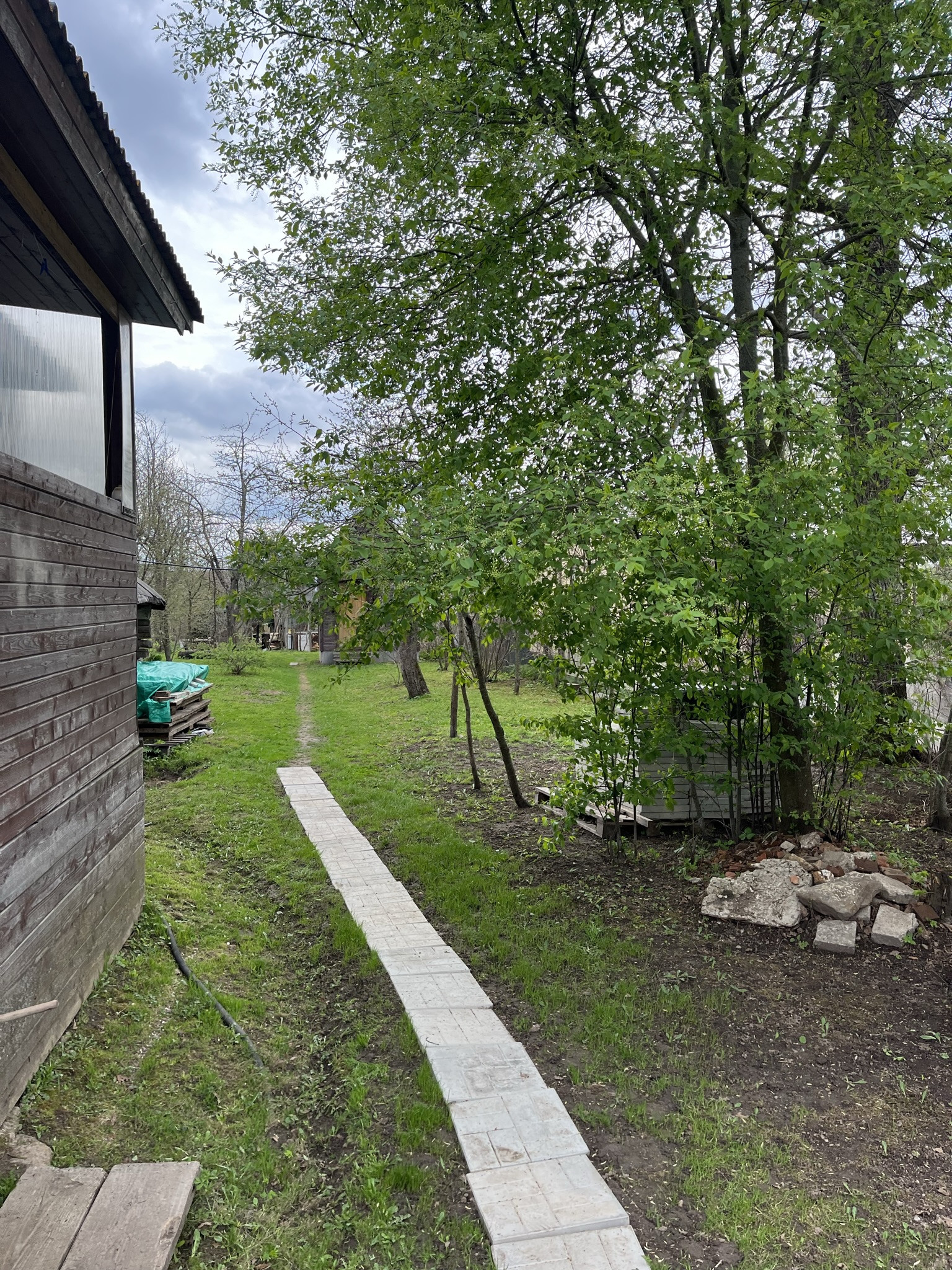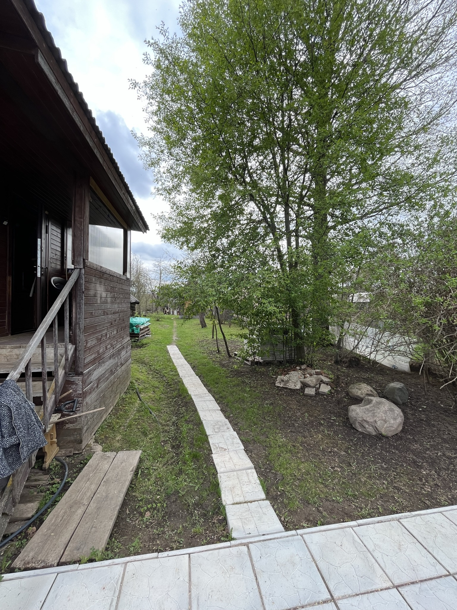 на участке есть баня на дровах, множество садовых деревьев