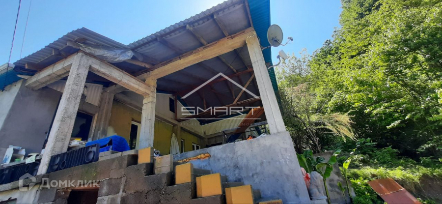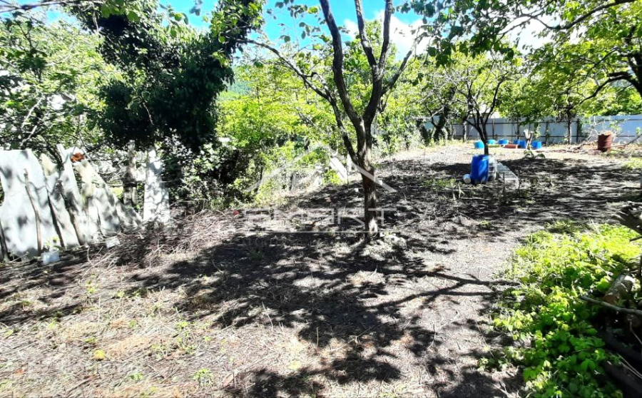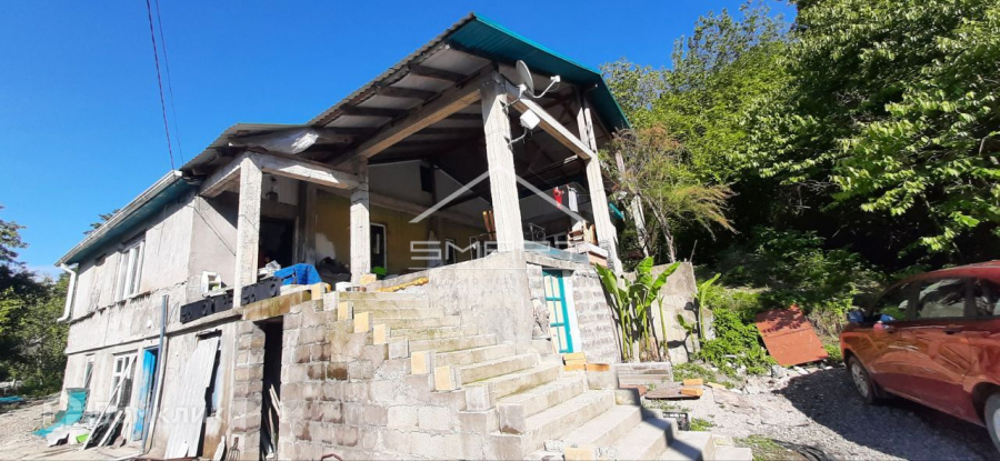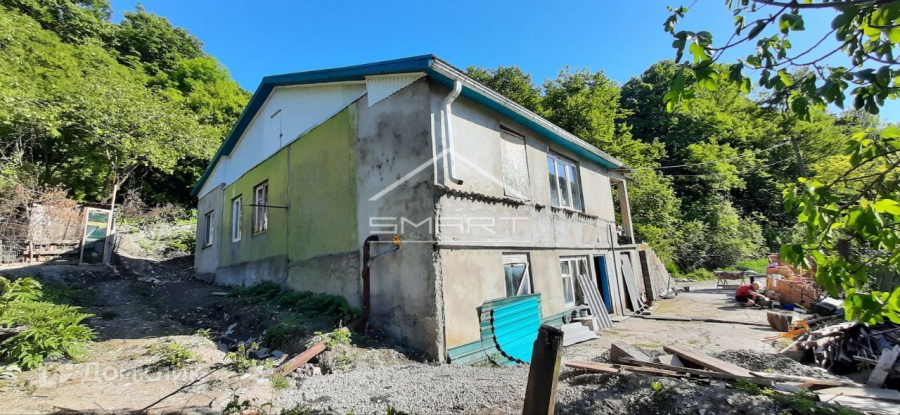 У дома участок в 15 соток, одна часть пологая (та, что на фото), разработана под огород, вторая часть на склоне горы. На участке есть плодовые деревья - хурма, яблоня. Участок НЕ затапливается никогда. Это одно из немногих мест, которое защищено от разливов реки и шквалистых ветров, причем нет никаких подъемов в гору, ровная пологая дорога до самого дома - тоже редкость для побережья. К участку ведет своя отдельная дорога.