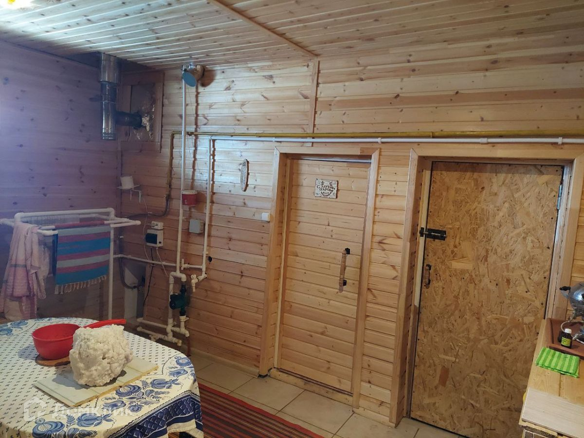 Баня расположена под общей крышей дома, что очень удобно для зимнего периода. Баня отапливается газовым котлом с электронной регулировкой температуры в парной. Полы в моечной и предбаннике прогреваются теплым полом, также есть выход на улицу.
