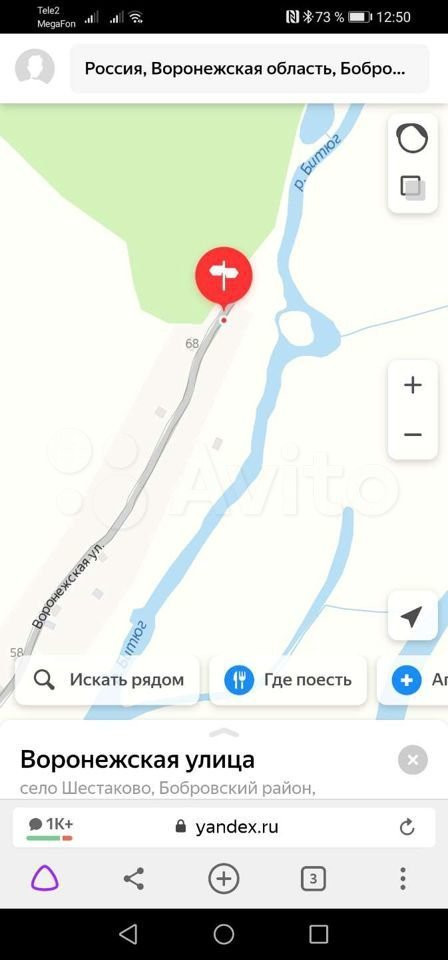 Продам земельный участок в с. Шестаково в 6 км от трассы М4 Дон. Расположен на берегу реки Битюг, одной из чистейших в России. Участок состоит из 2 частей 28 и 18 соток. Присвоены кадастровые номера 36:02:3900008:76 и 77 и адреса по ул. Воронежская 68 и 68а. Он располагается в конце улицы в заповедном лесу Урочище Липовая дача и вокруг только лес и река и никто не будет Вас тревожить. На реке есть остров, который является прекрасным дополнением этого живописного уголка природы. Подойдёт для строительства загородной усадьбы или небольшой турбазы. Отличное место для рыбалки и водных прогулок. Асфальт практически до дома, проведено тех. подсоединение эл-ва на 15 кВт, газ до соседей, у которых уже построен коттедж с причалом. Уникальный ландшафт, позволяющий реализовать все свои задумки и мечты. В селе есть храм, сбербанк, школа с садиком, аптека, амбулатория, магазины. Собственник