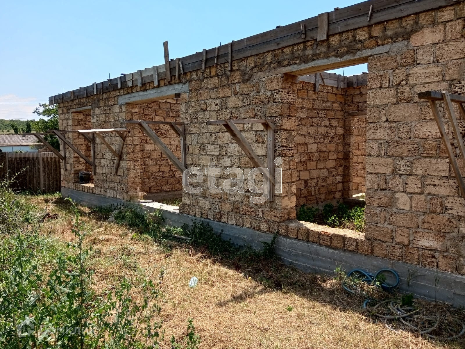 Предлагаем купить. Участок ИЖС вместе с коробкой дома сделанной по индивидуальному проекту из ракушечника.
