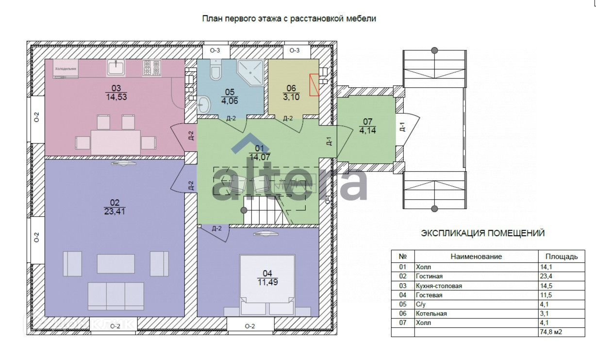Высота пoтолков 3 м., тeплыe полы по всему первому этажу, включая входную группу.