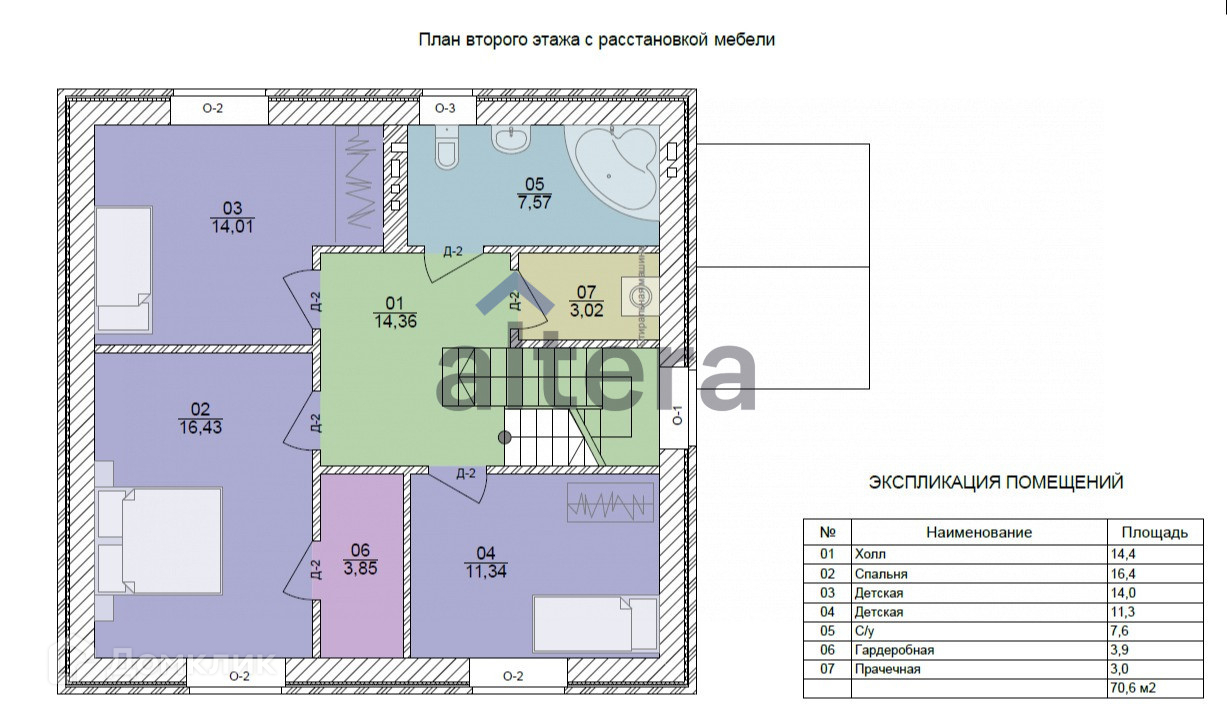 Hа втором этажe – 3 cпальни, cан.узeл, большая гардеробная.
