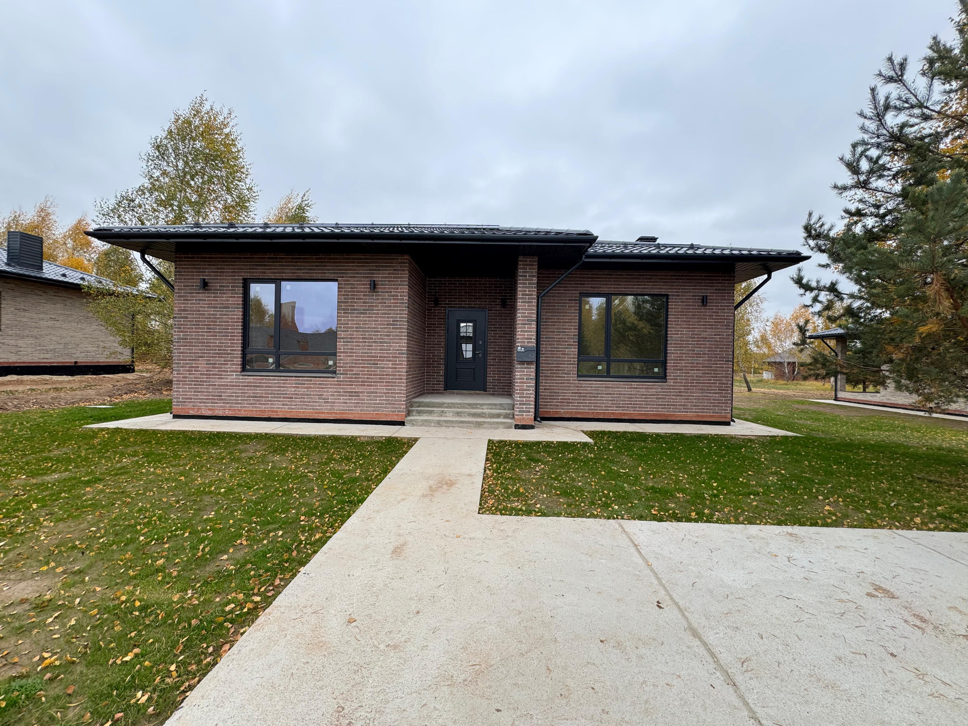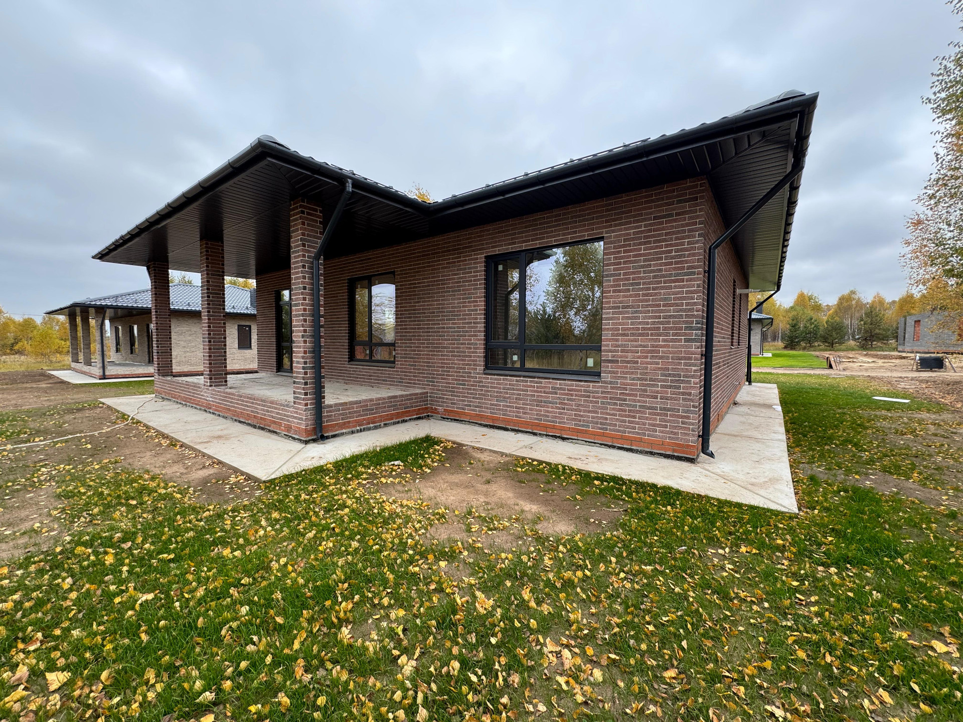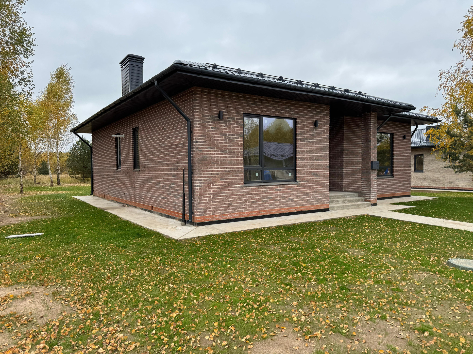Дом находится в окружении леса, этот дом уже с полным благоустройством(Газон, утепленные отмостки, парковка)