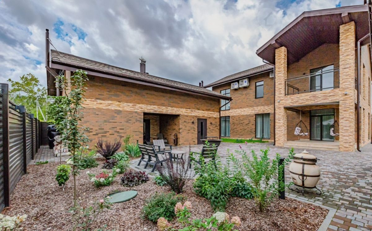 - территория участка, выложена брусчаткой с системой подогрева, в связи с чем отпадает надобность уборки снега зимой. Так же, установлен автополив на газонах.