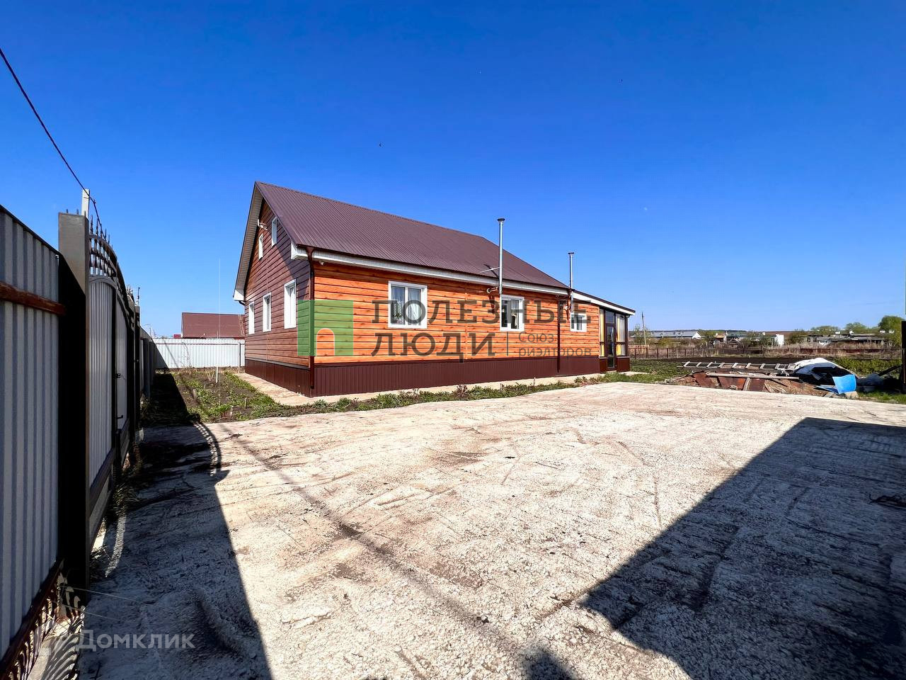 -огорожен забором из профлиста с художественными кованными элементами.
