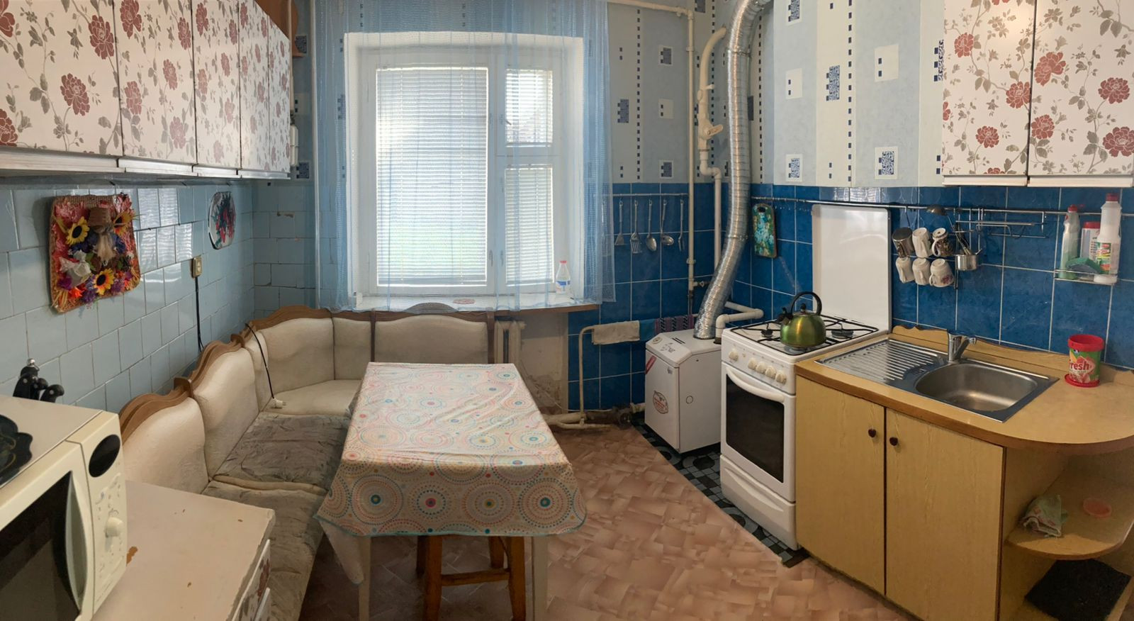 1 этаж: зал, кухня, сан.узел, большой коридор с летней комнатой.