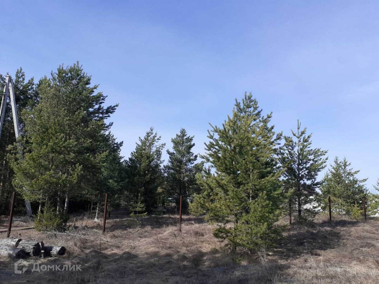 Ограждён по периметру столбами для будущего забора.
