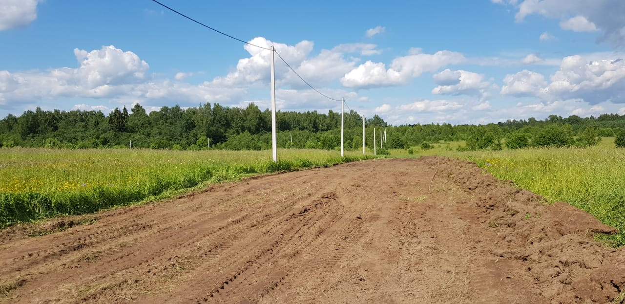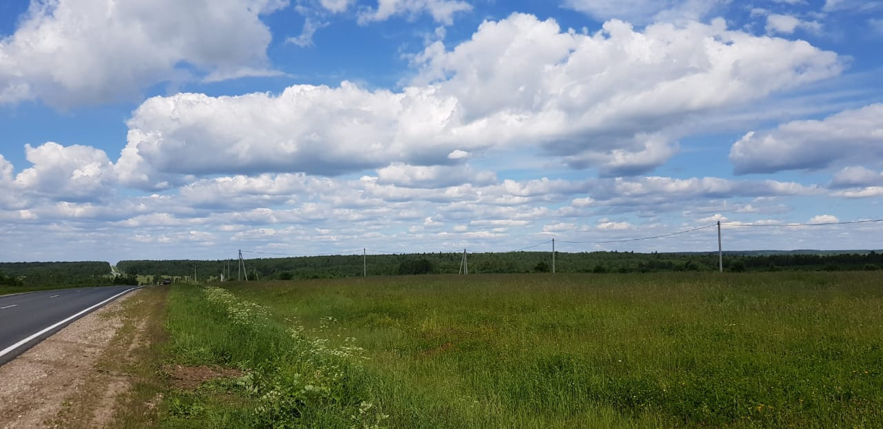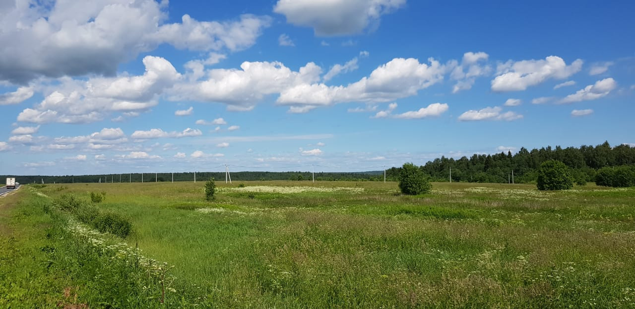 Участок представляет собой большое поле, с одной стороны огороженное густым красивым массивом леса, с другой стороны асфальтированная дорога.
