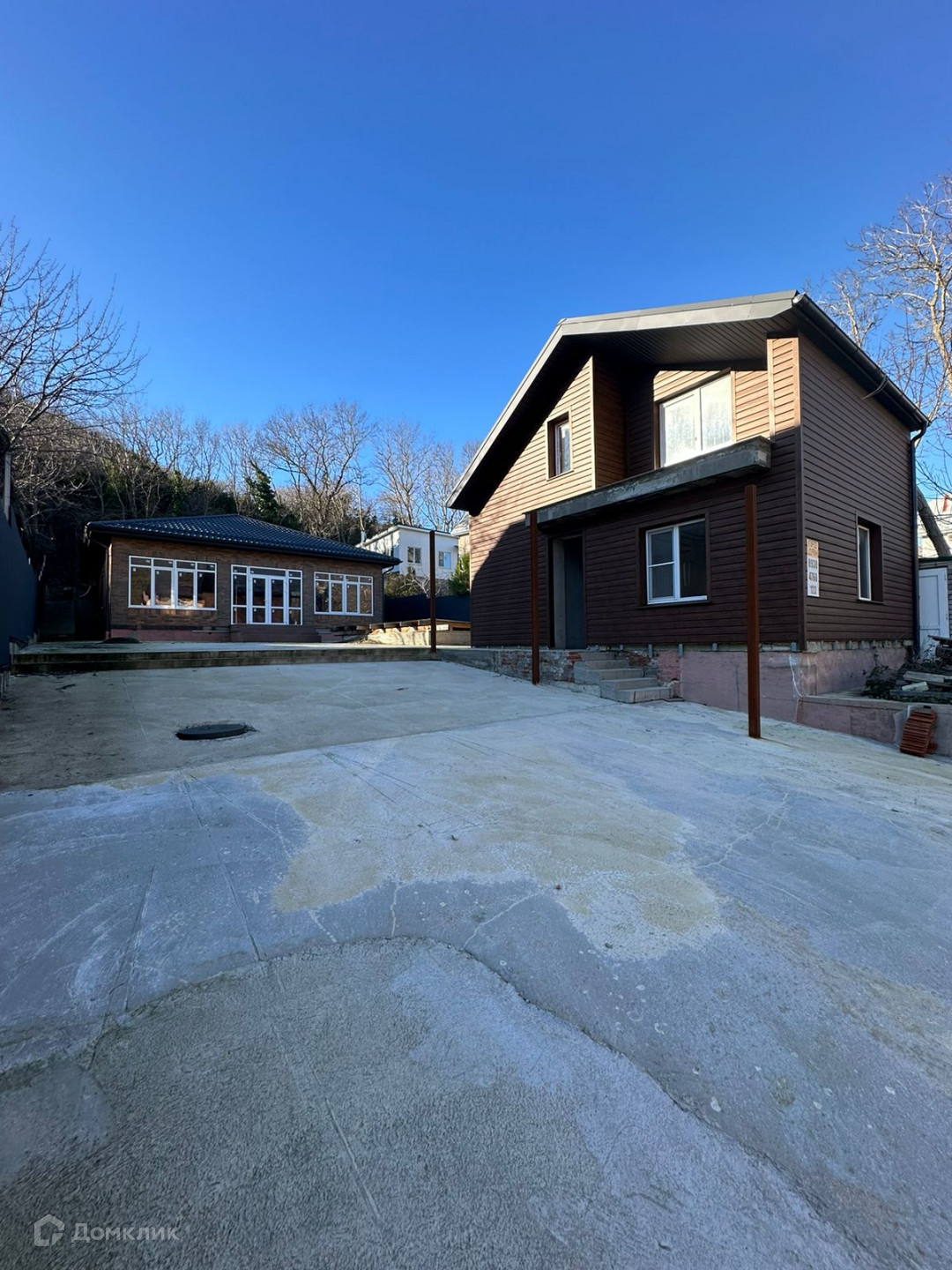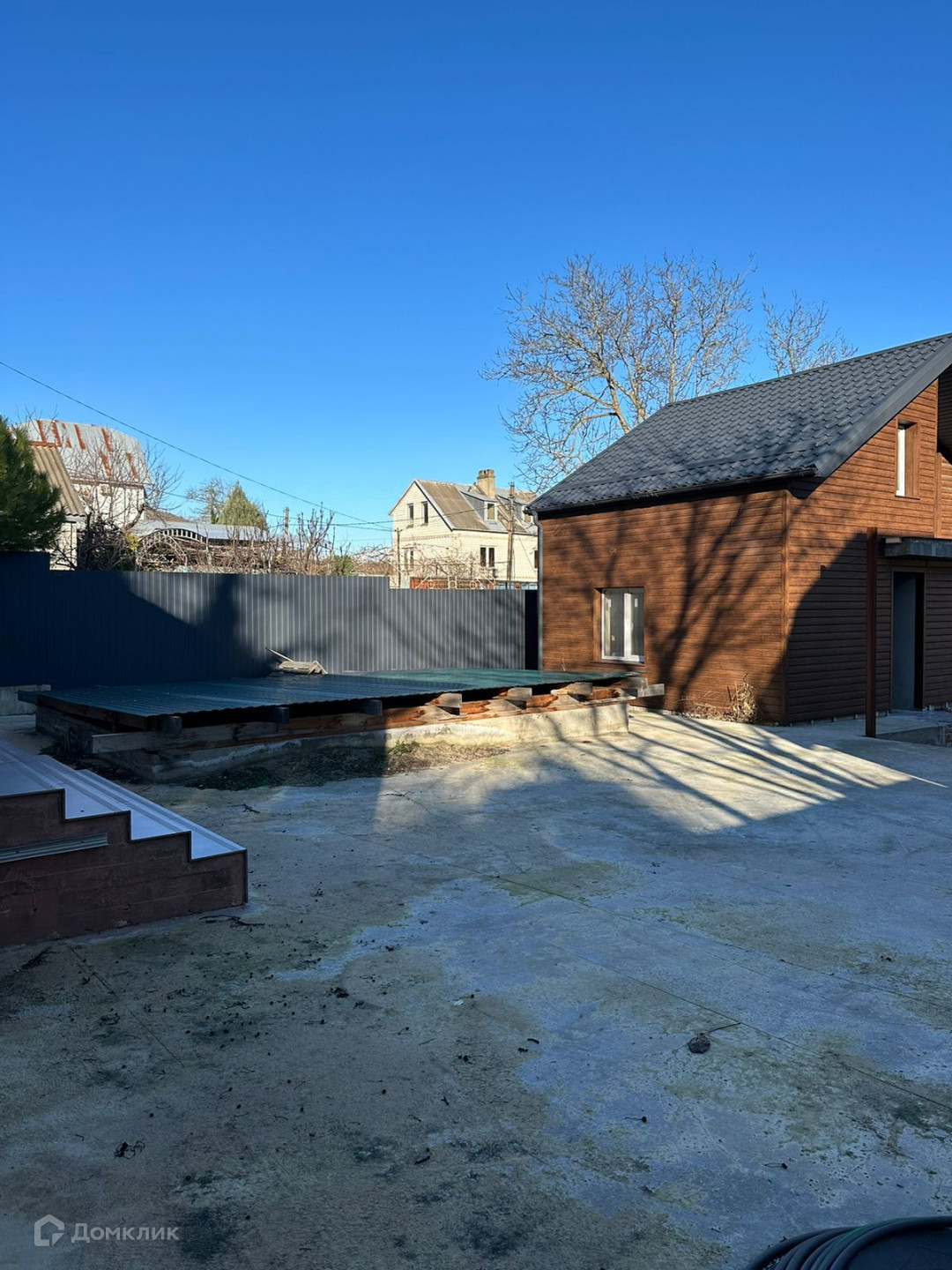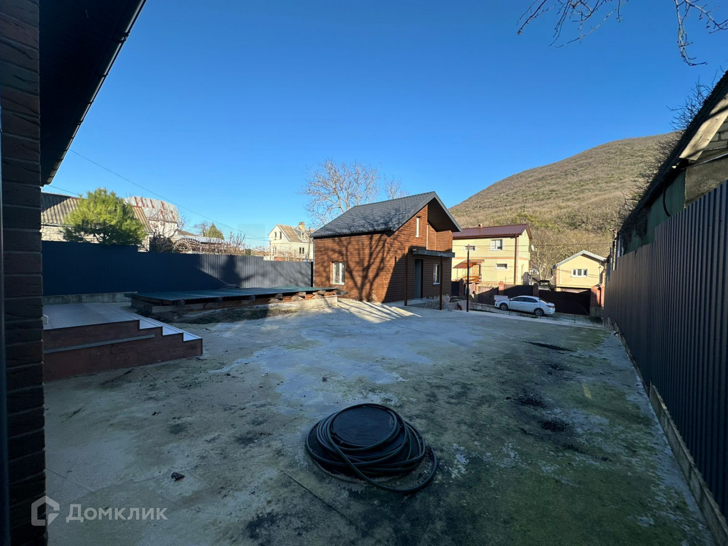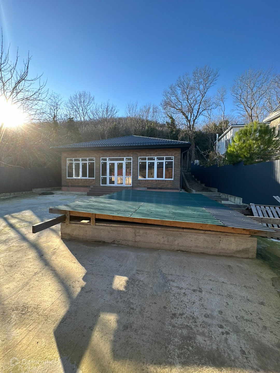 Во дворе есть бетонное покрытие. Также имеется бассейн размером 3x7 метров, полностью оборудованный со всеми необходимыми коммуникациями.