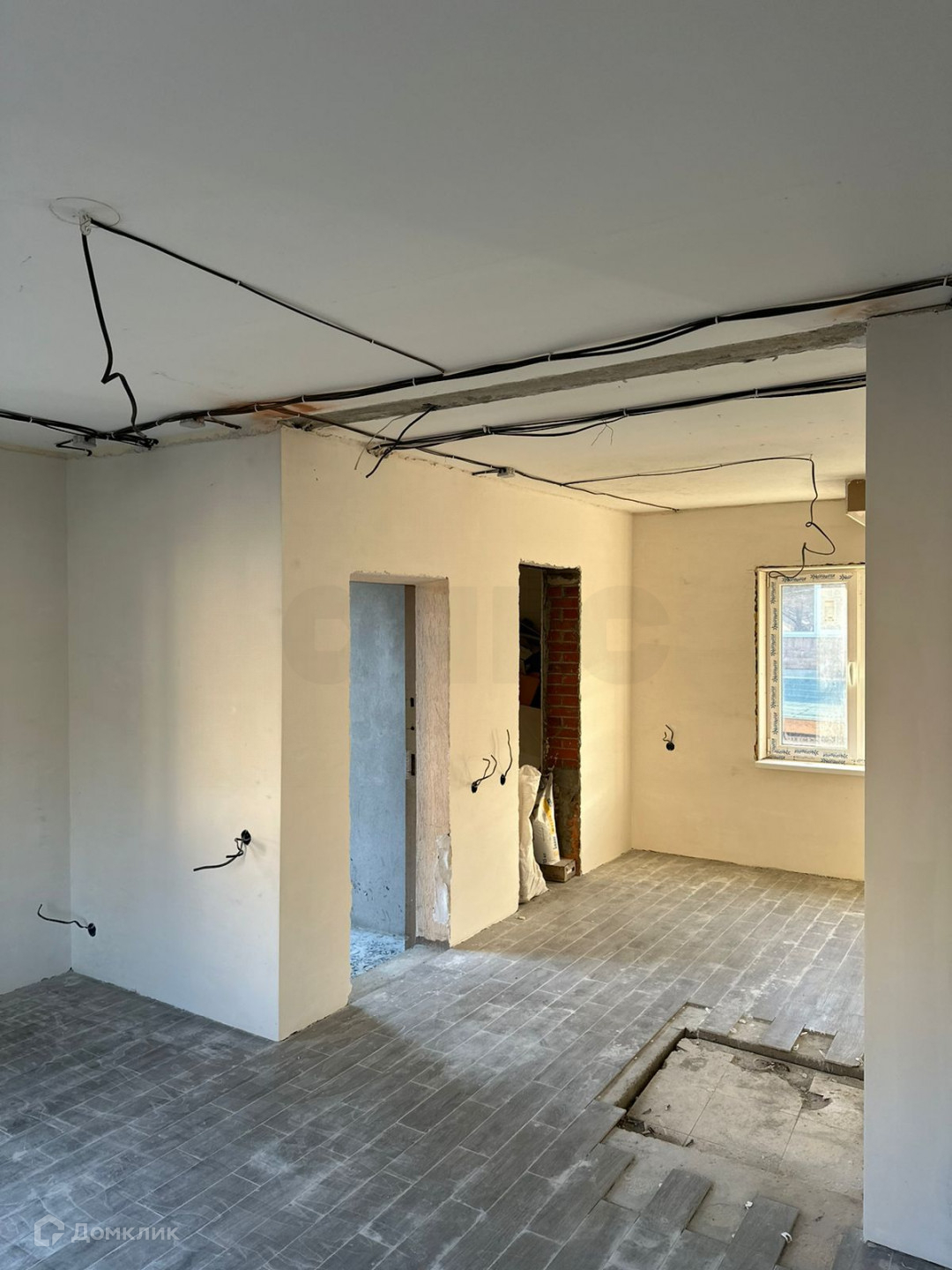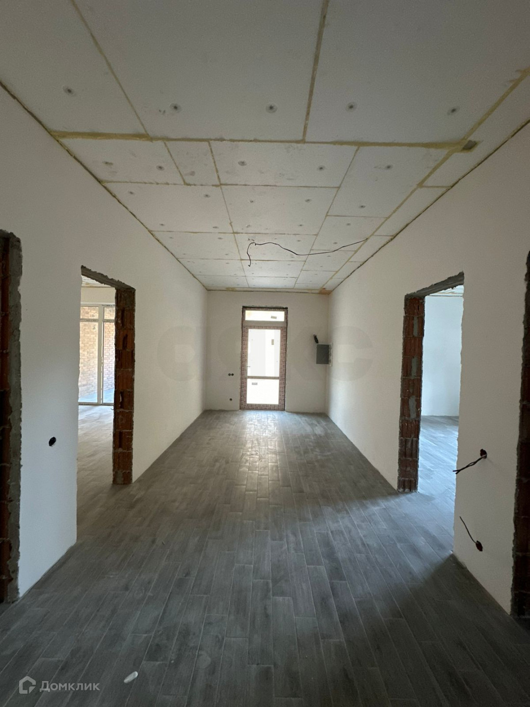 Основной дом имеет площадь 138 квадратных метров и предлагает комфортные условия проживания. Внутри вы найдете 3 просторные спальни, уютную кухню и прекрасную террасу с панорамными окнами, открывающими вид на бассейн. Также в доме имеется большой подвал, занимающий практически всю площадь здания. Все комнаты оснащены системой "теплый пол". Отделка полностью выполнена в плитке. Электропроводка полностью готова, а стены идеально отштукатурены. Санитарные узлы также отделаны плиткой.