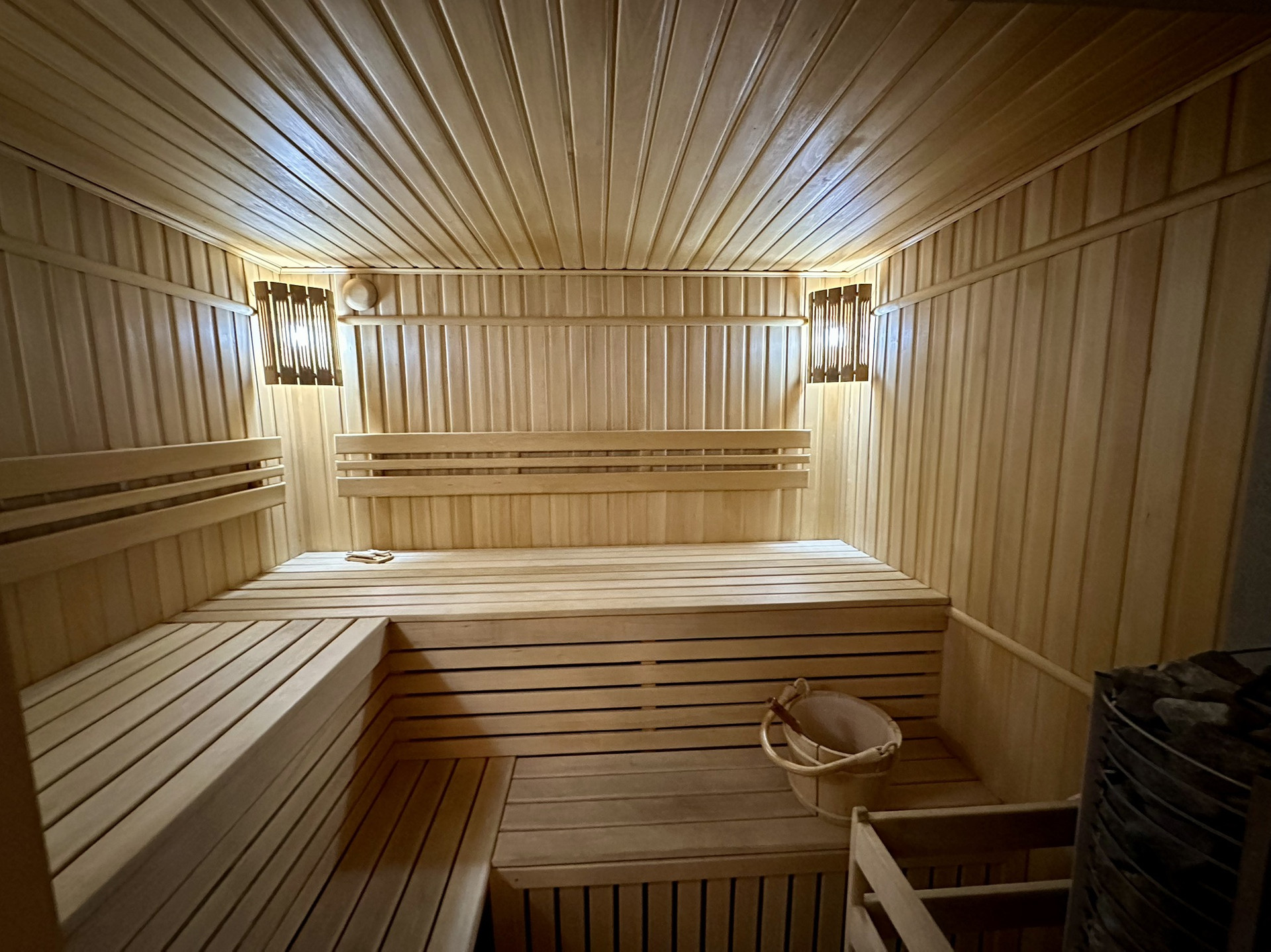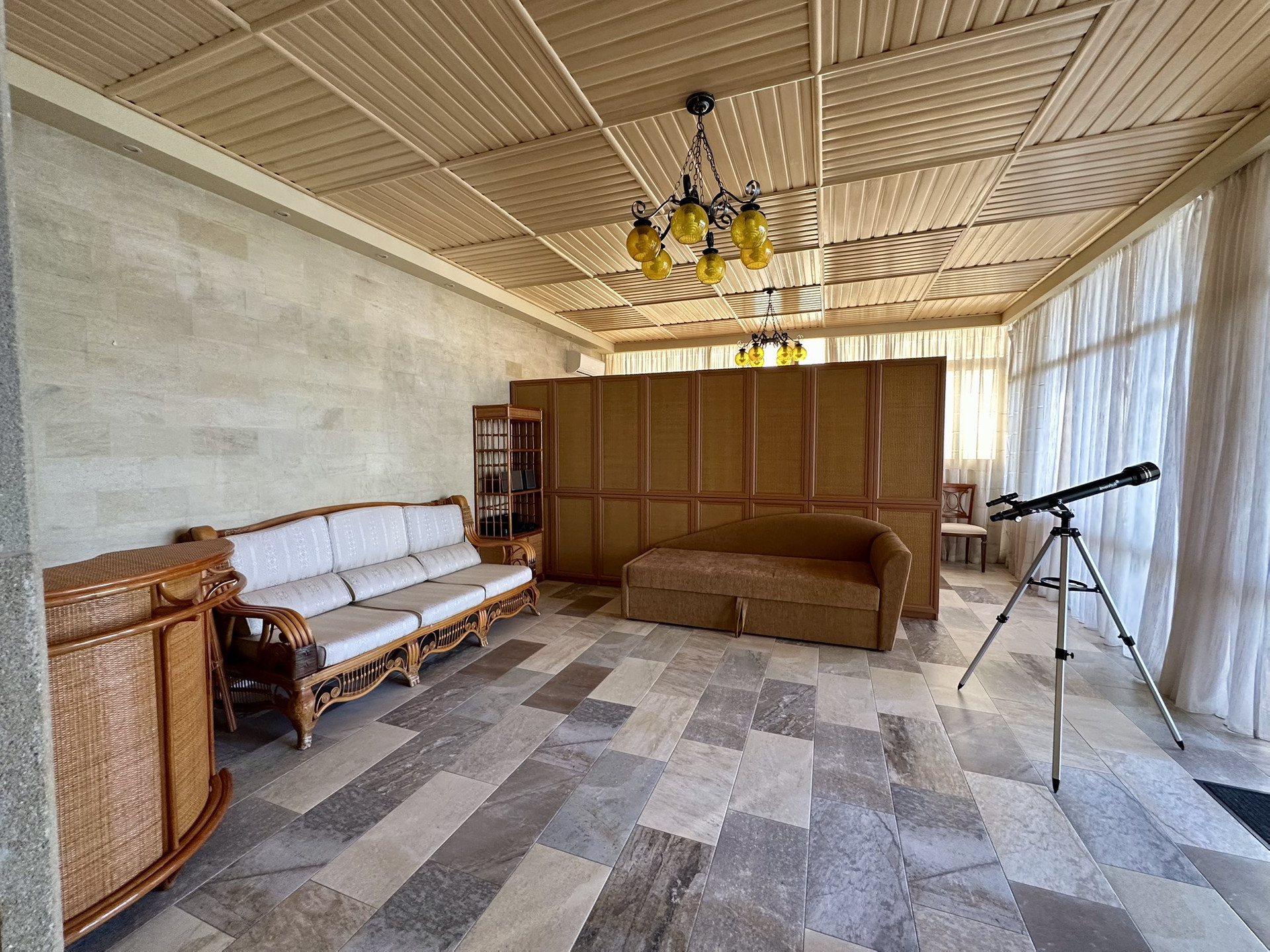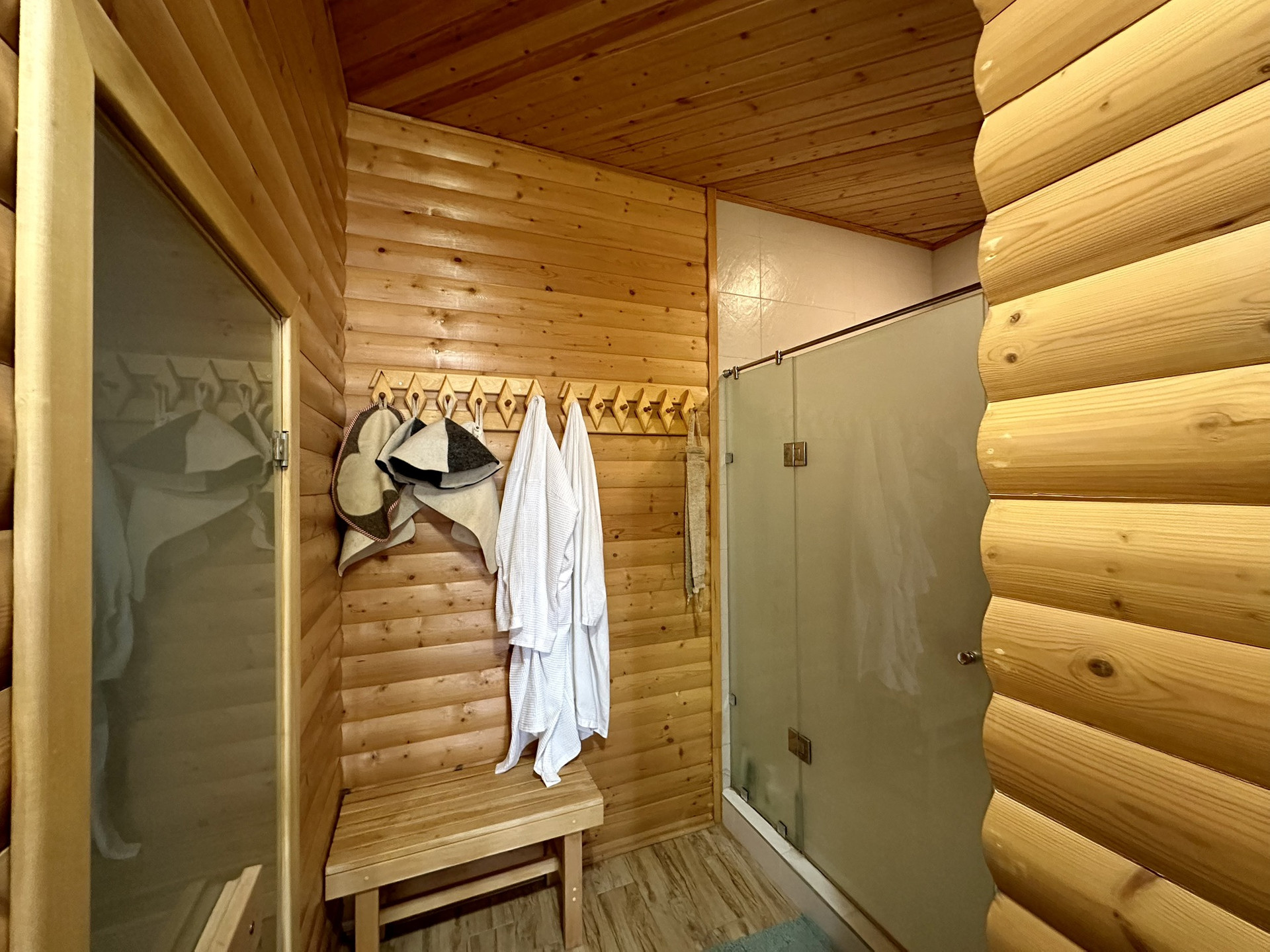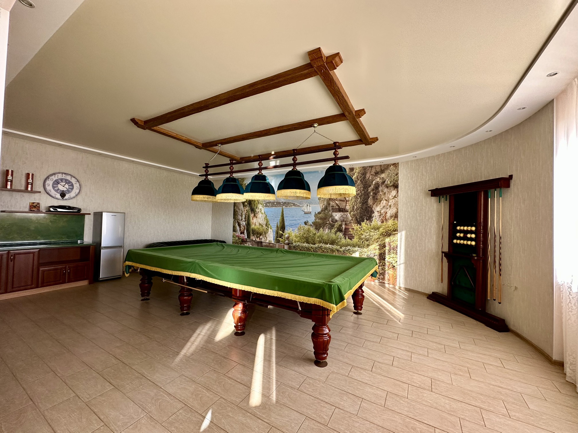 На первом этаже большой спортзал, сауна, винная комната, прачечная и бильярд.