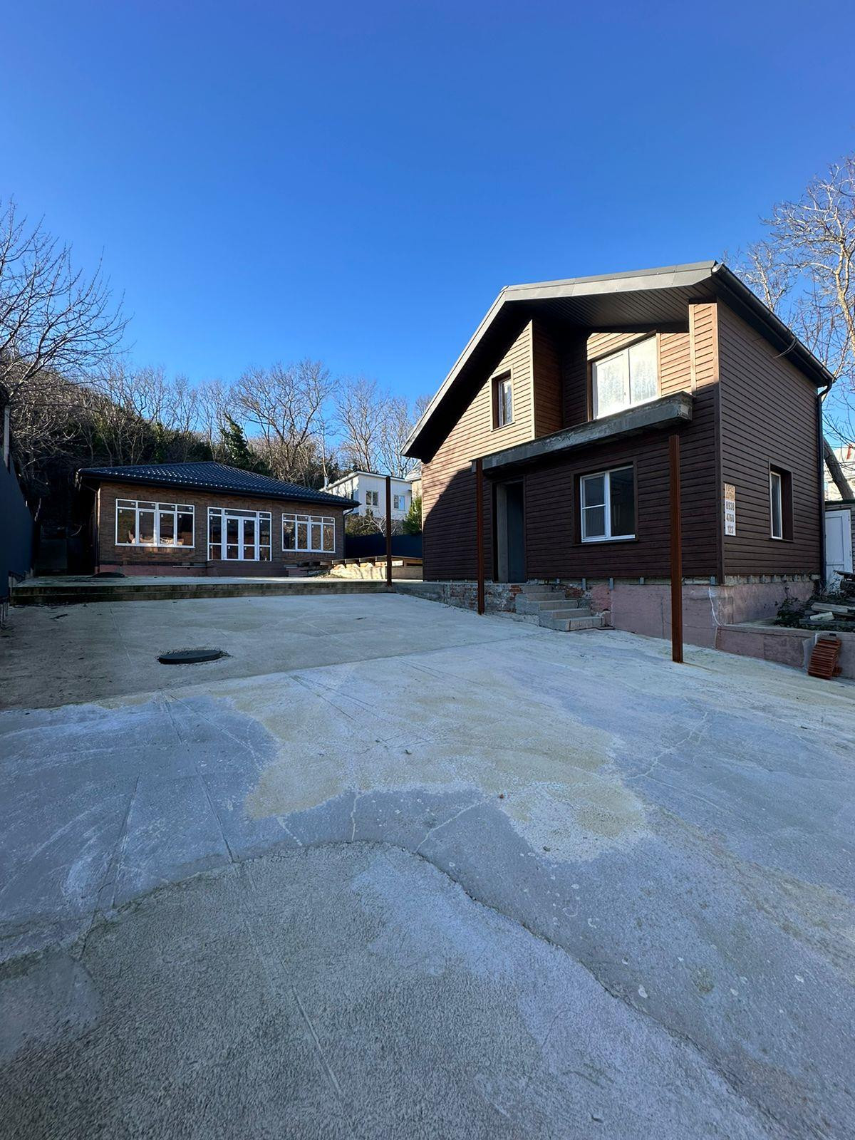 Во дворе полностью бетонное покрытие. Залит бассейн 3*7 со всеми коммуникациями для него.
