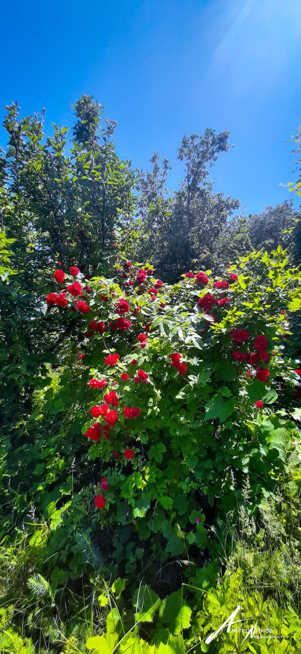 На участке растут плодовые деревья: слива, яблони, вишня, орех, виноград.