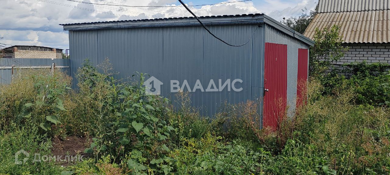 На участке построен металлический гараж.